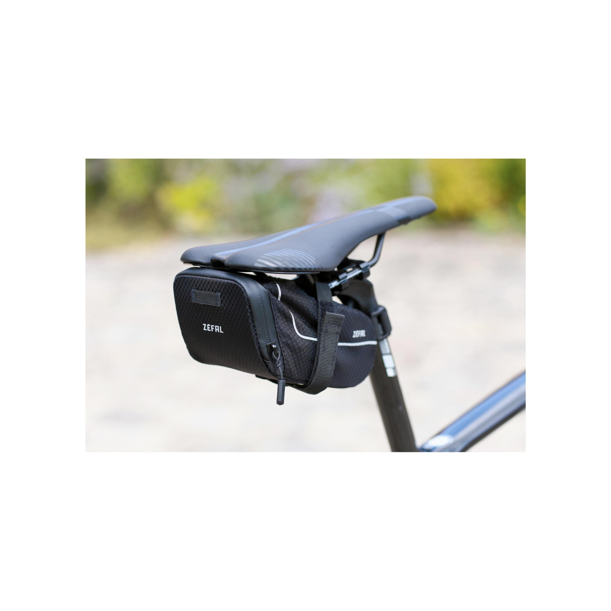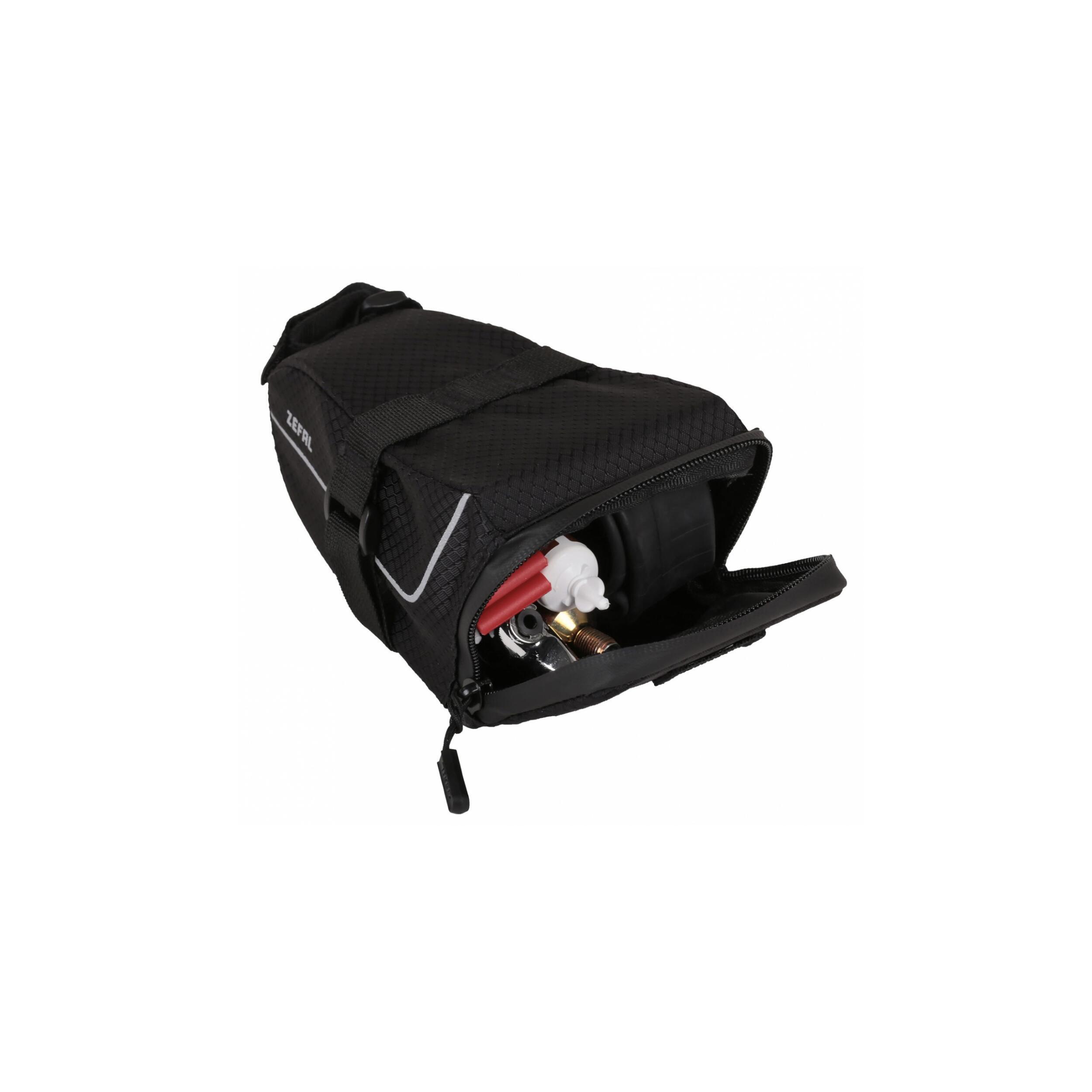 Sacoche en polyester très légère dotée d'une large ouverture pour facilité l'accès à l'intérieur. Installation sous la selle. Son plus : bandes réfléchissantes et passant pour l'éclairage pour renforcer votre sécurité la nuit tombée.