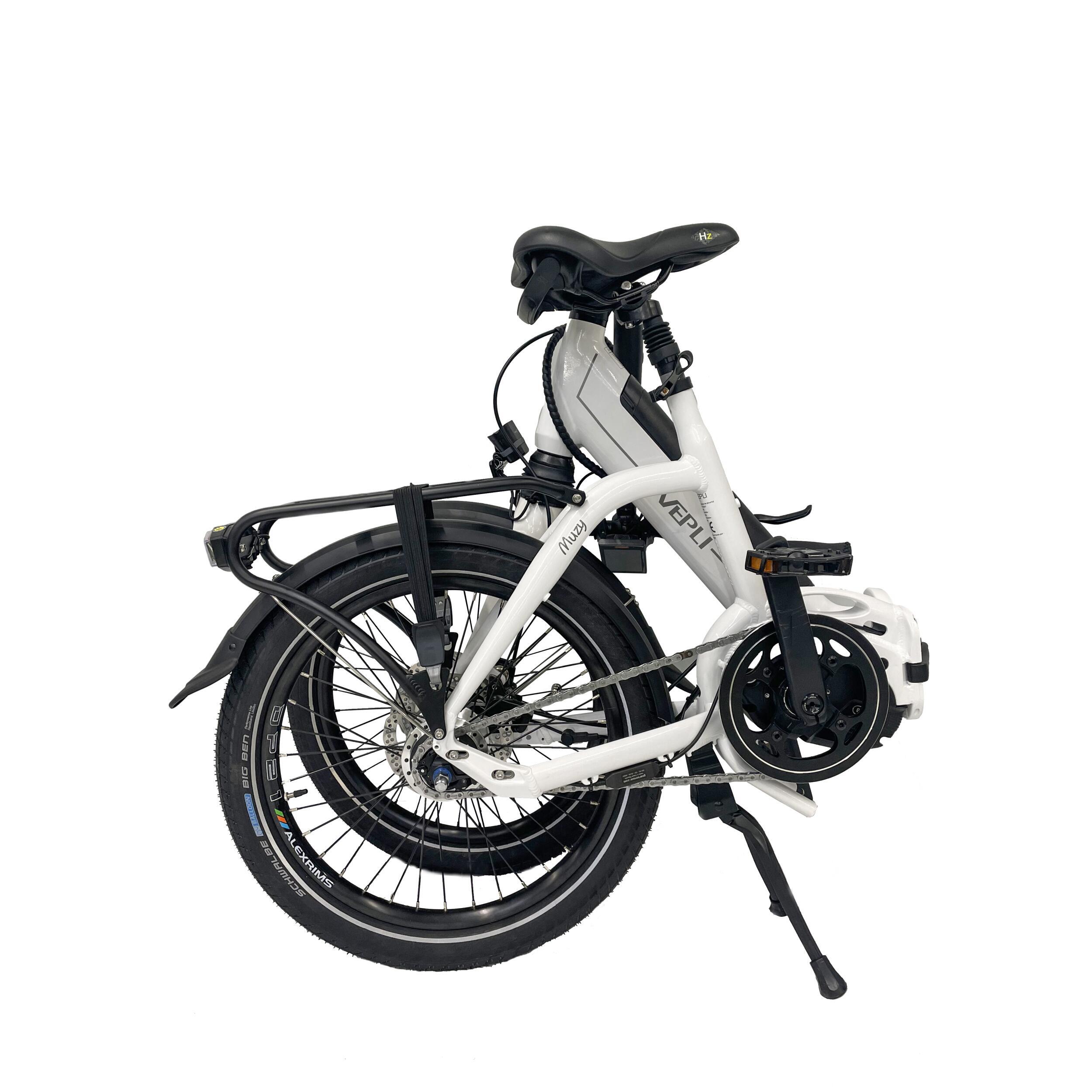 Vélo à assistance électrique pliant Muzy 20", équipé d’un moteur central et d’une batterie intégrée, destiné aux usages urbains, intermodaux et loisirs.