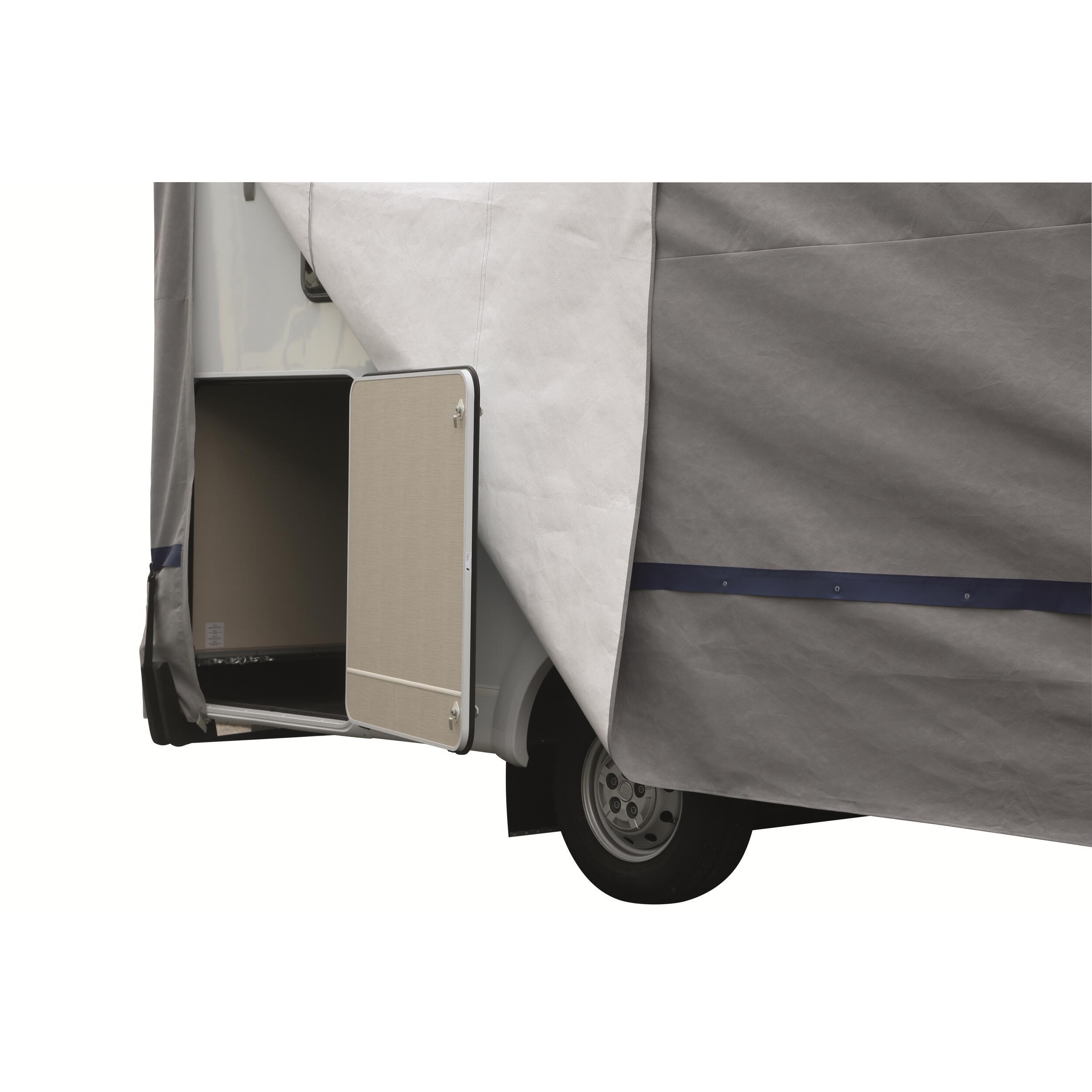 Housse de protection caravane en Tyvek-SUPRA-FC imperméable, respirante et anti-tâhes. Il se caractérise par sa grande résistance aux déchirures et son faible poids. 4 fermetures éclair présentes sur toute la périphérie garantissent une pose et un retrait facile, tout en permettant un accès pratique aux coffres de rangement situés du côté gauche du véhicule. Deux personnes suffisent à recouvrir le véhicule, à l’aide d’un manche télescopique. Système de fixation sûr et règlable dapté à toutes les tailles composé de sangles à passer dans les oeillets intégrés.