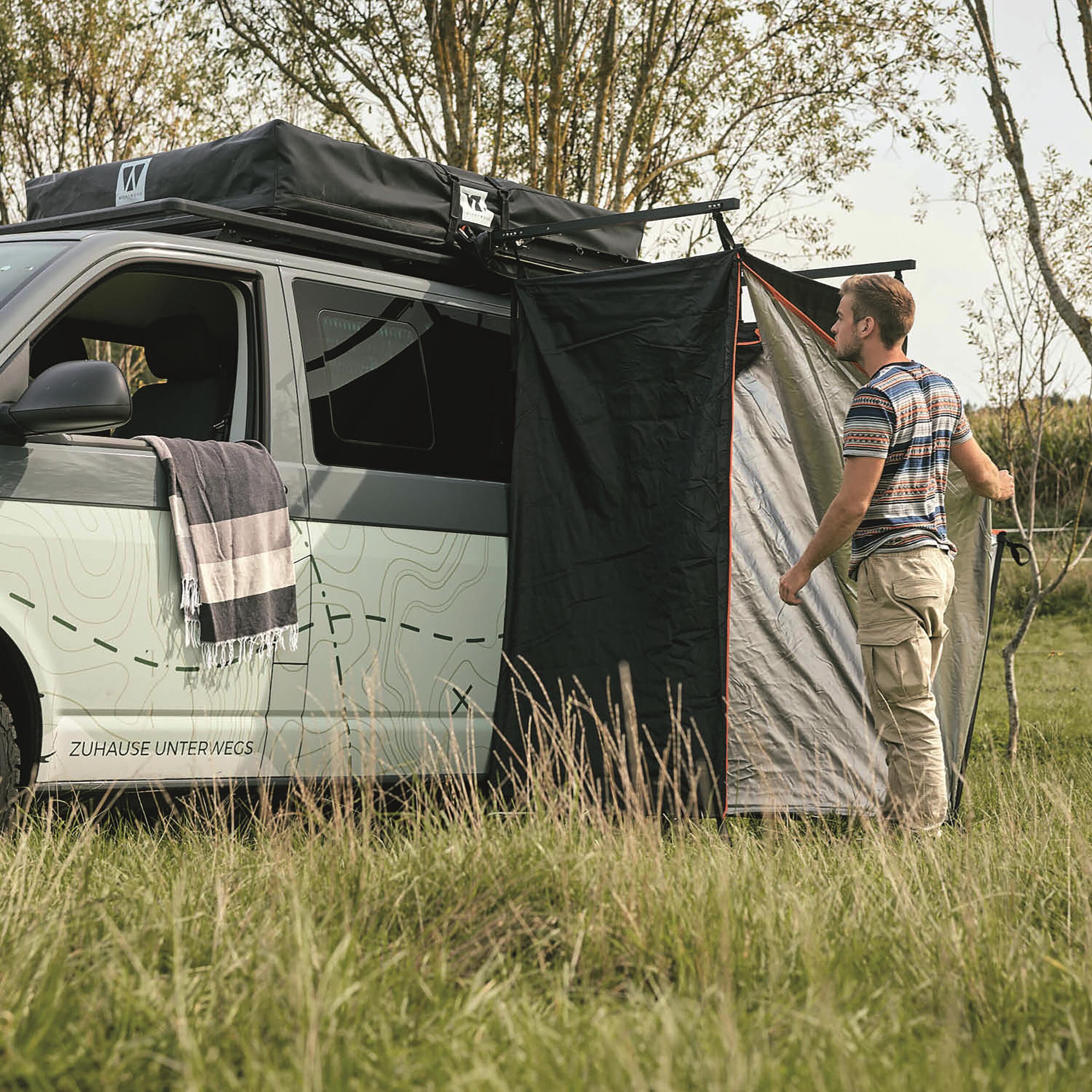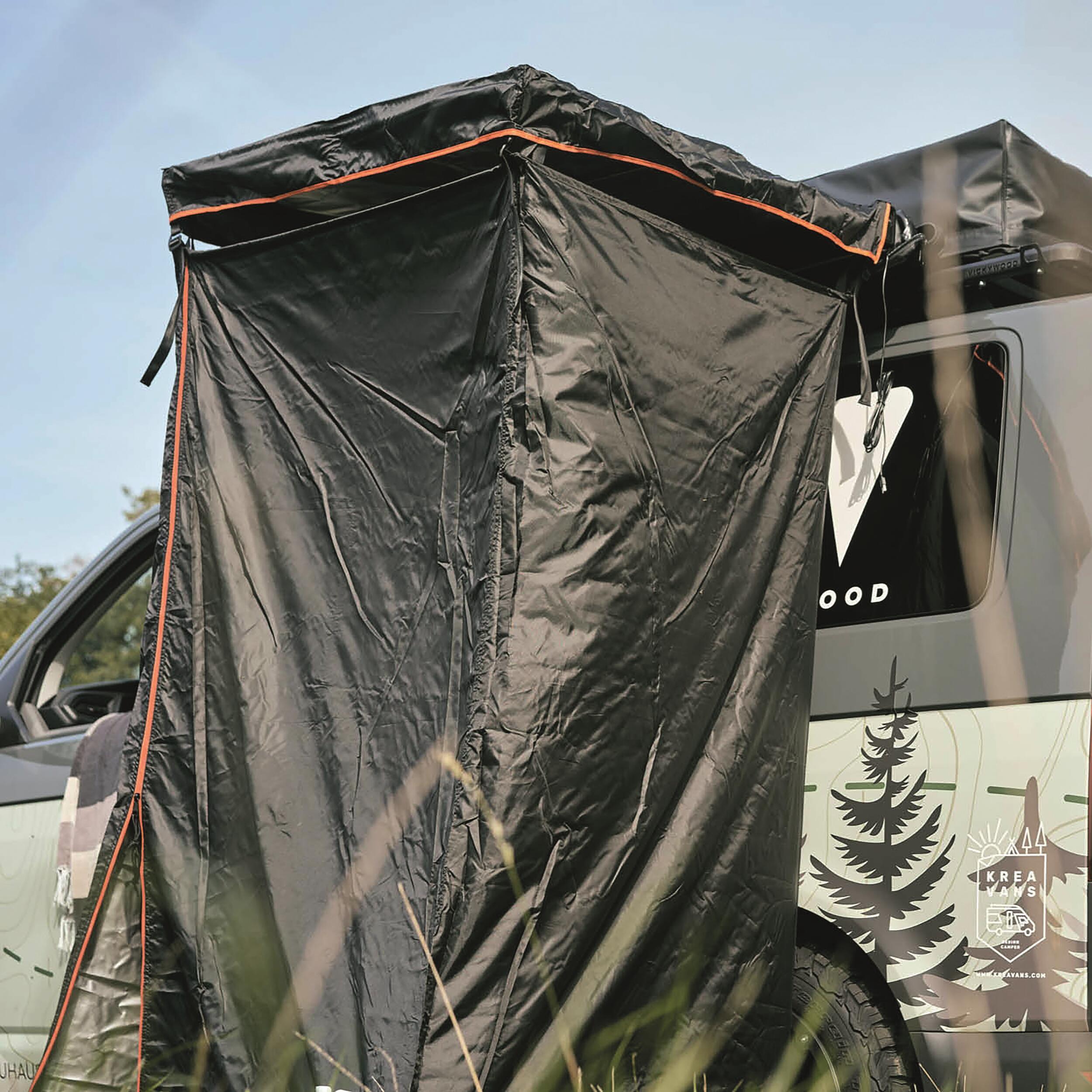 Elle offre suffisamment d'espace pour vous changer, prendre une douche ou même installer un toilette portable, tout cela en toute intimité.