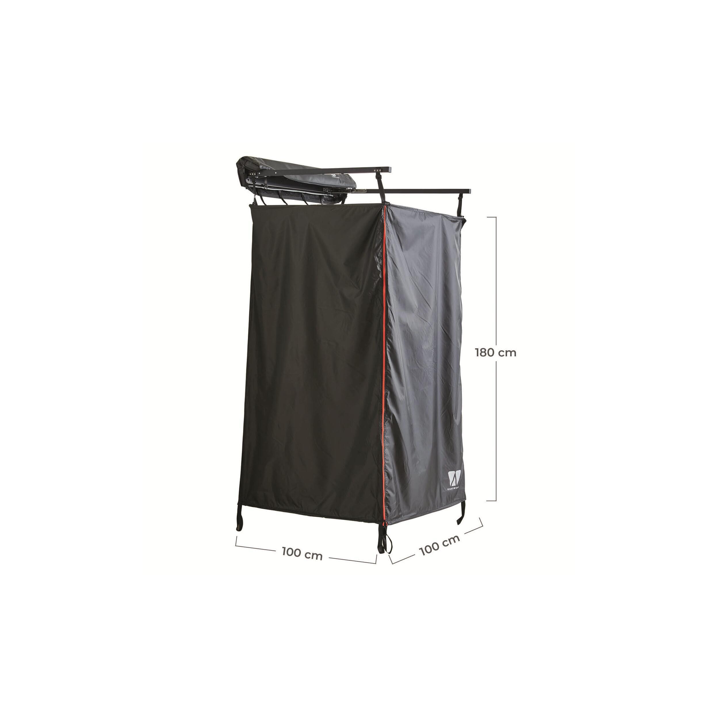 Rapide à monter et prête à l'emploi, la tente de douche est particulièrement recommandée avec l'utilisation d'une tente de toit.