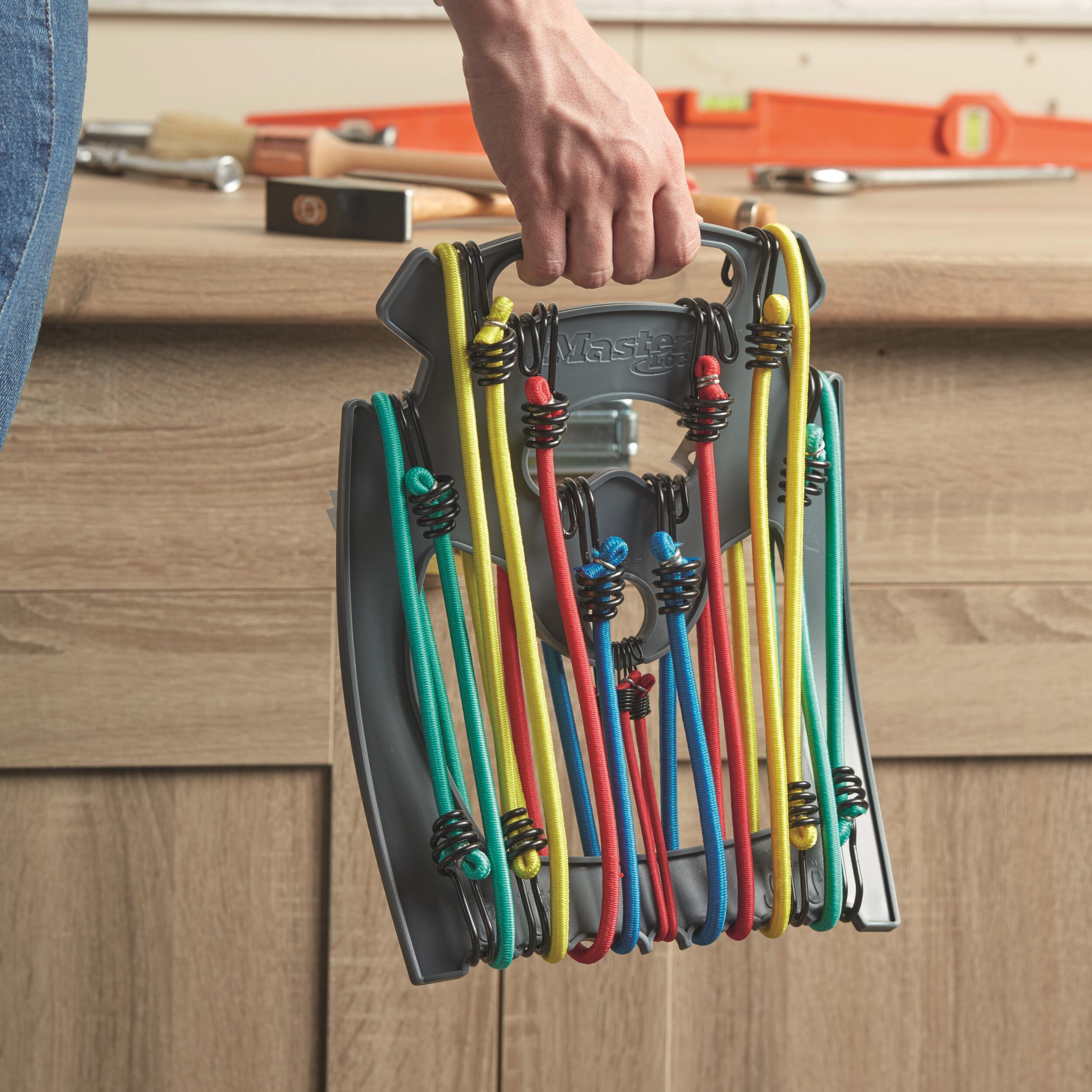 Ce set comprend 10 tendeurs avec crochets double fil pour une résistance supérieure. Le design avec des crochets inversés sur le tendeur permet d'avoir un espace d'accrochage plus large. Le bout des crochets est arrondi pour prévenir les risques de rayures. Un cadre avec poignée intégrée est inclus pour un stockage, une organisation et un transport pratiques. Les tendeurs peuvent sécuriser des charges jusqu'à 40 kg, ils sont étirables de 25 cm à 37 cm, de 45 cm à 80 cm, de 60 cm à 90 cm, de 80 cm à 120 cm, de 100 cm à 150 cm.