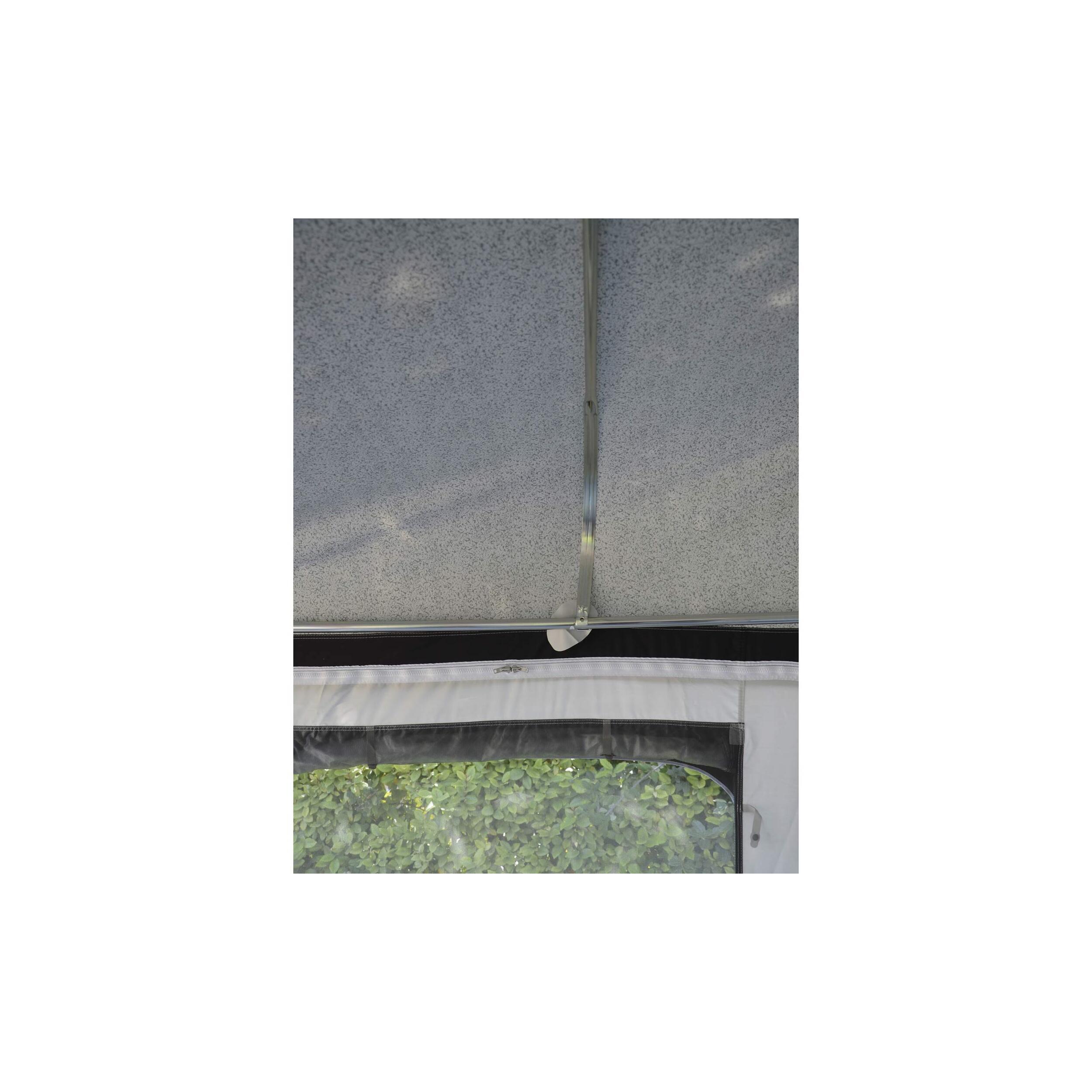 Elément à ajouter sur l'armature de l'auvent pour prévenir l'apparition des poches d'eau. Procure également une meilleure tenue à l'auvent. Se fixe sur les tubes du toit grâce à des crochets-pinces présents à chaque extrémité de la barre anti-poche.