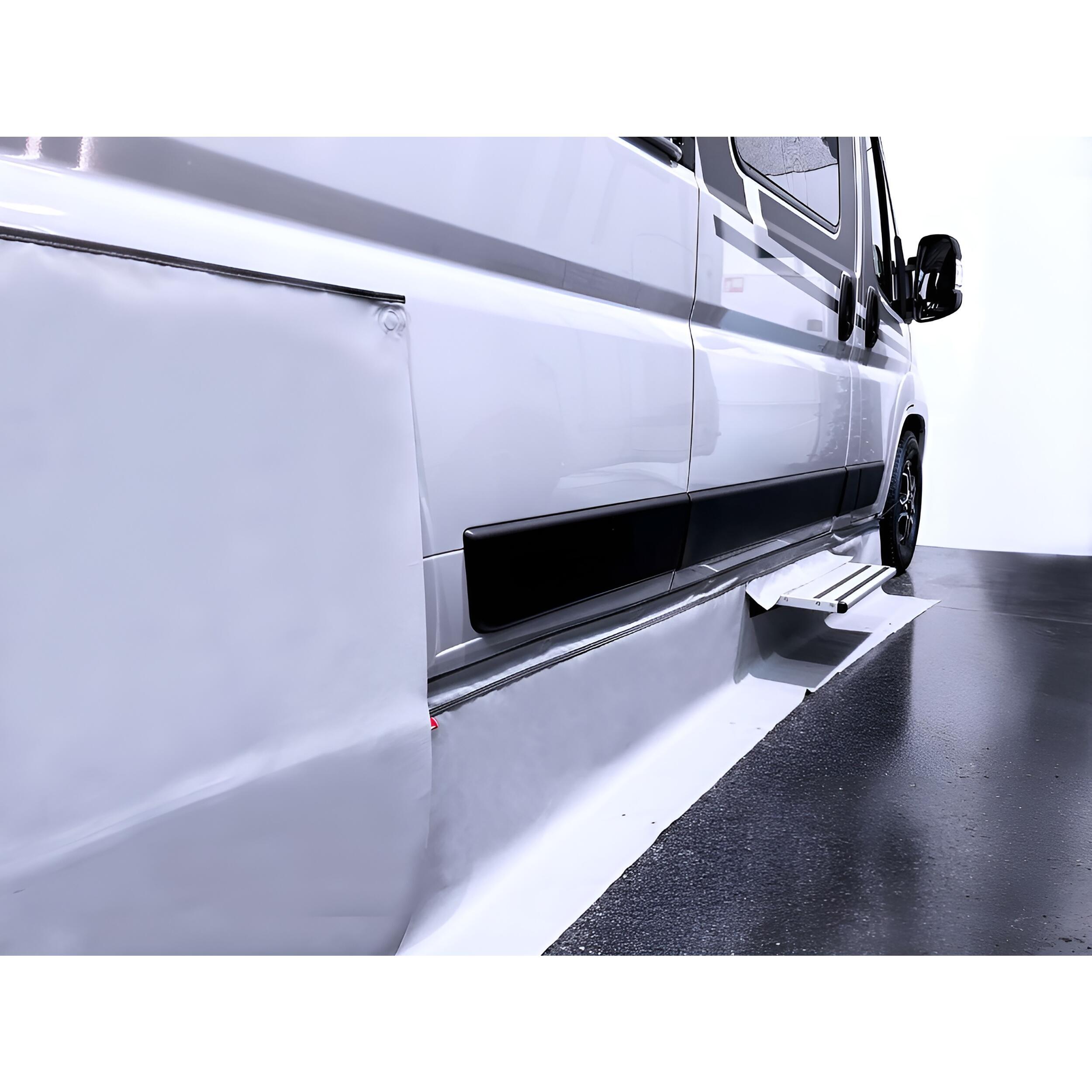 Lorsque vous voyagez en camping-car, fourgon ou caravane, l’espace sous le véhicule est souvent négligé. Pourtant, c’est une source majeure de courants d’air et de pertes de chaleur. La jupe de caisse Isabella a été pensée pour résoudre précisément ce problème. En assurant une barrière efficace entre les roues, elle limite les infiltrations d’air froid sous votre marquise et améliore considérablement le confort thermique de votre espace de vie.
