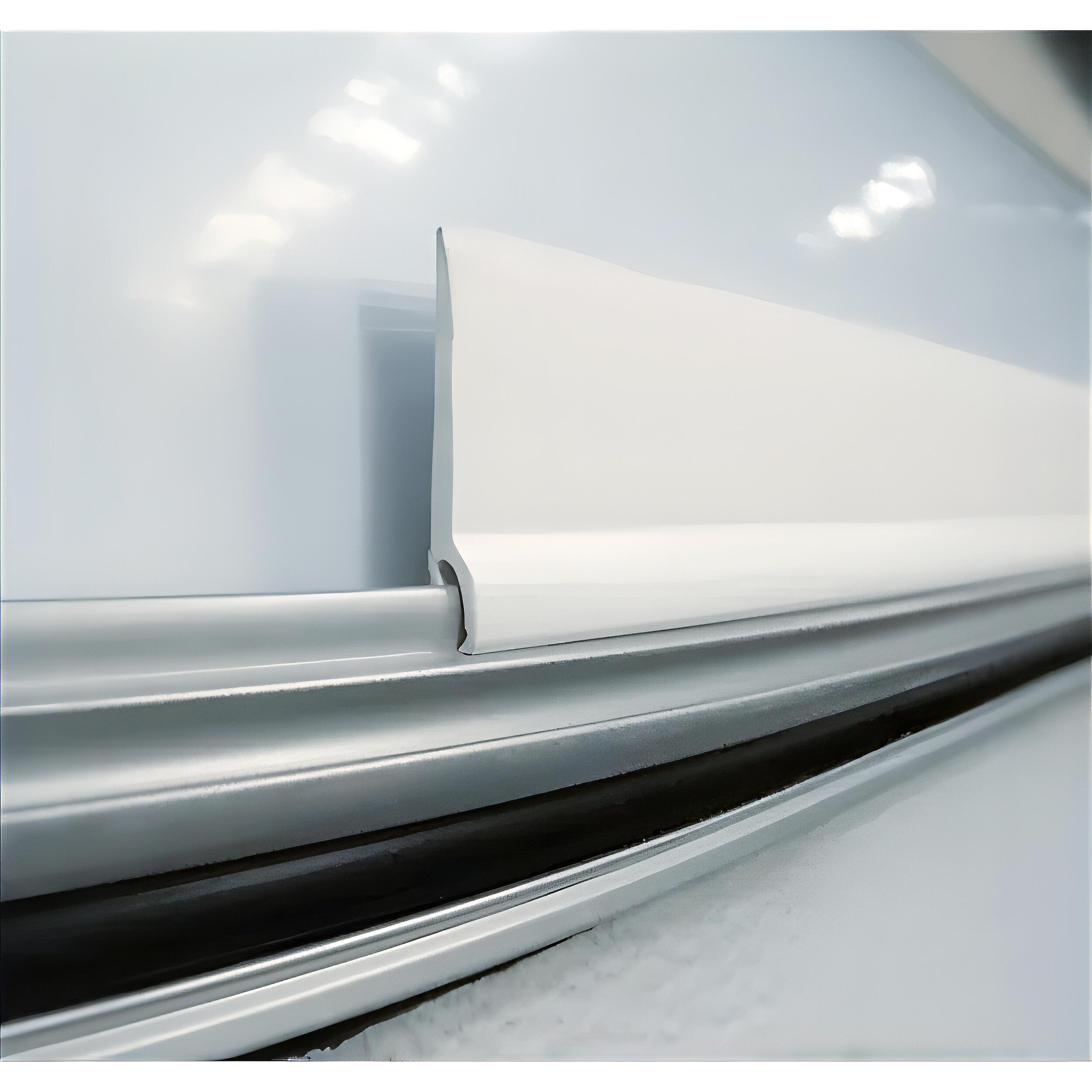 Bande de protection pour rail de caravane Eriba, qui empêche l’eau de pluie de stagner entre le toit et l’auvent et facilite son évacuation.