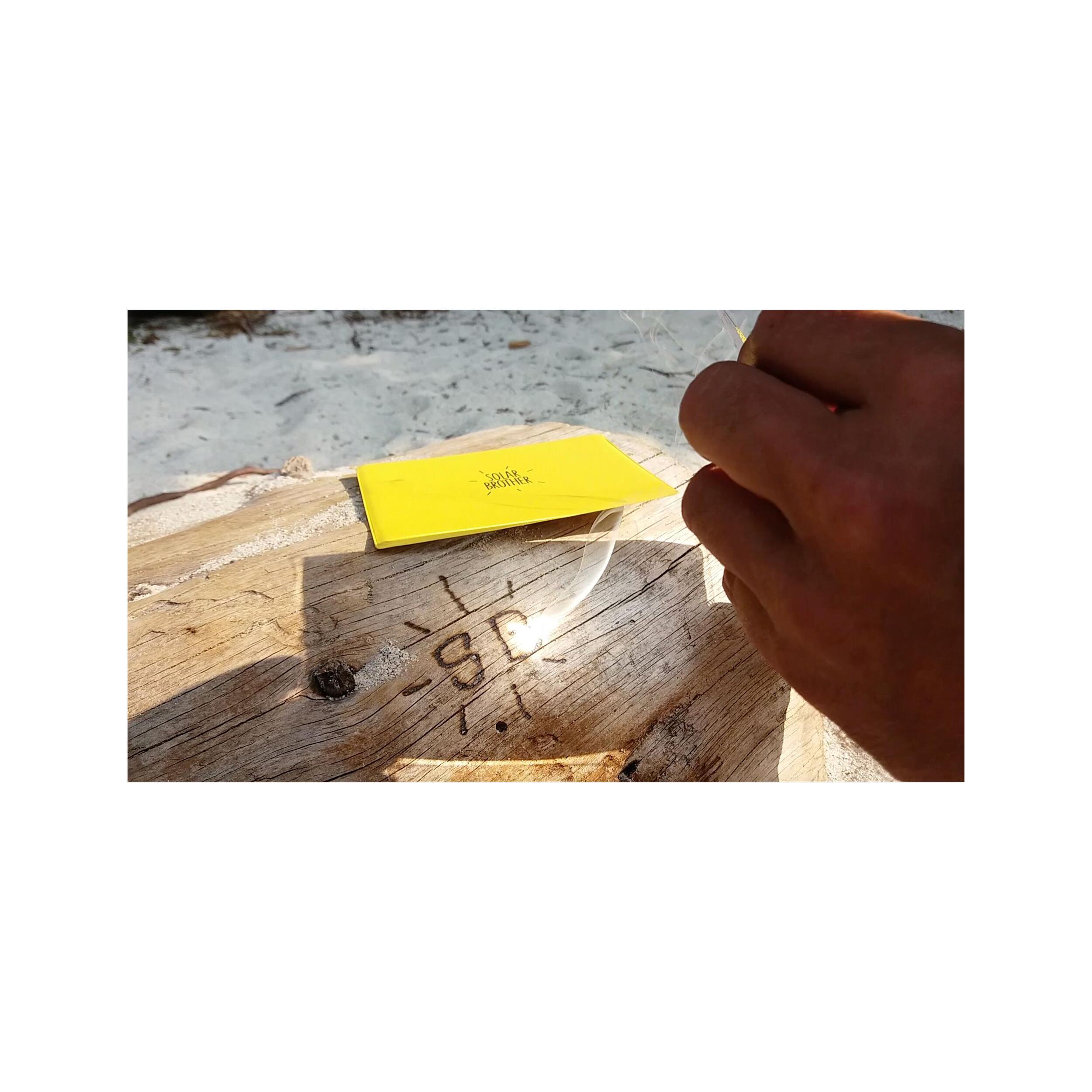 • La Firecard , pyrograveur solaire (bois, cuir) et allume feu solaire pour barbecues ou feu de camp. Facile d’utilisation, elle concentre les rayons du soleil en un point focal précis pour un allumage immédiat