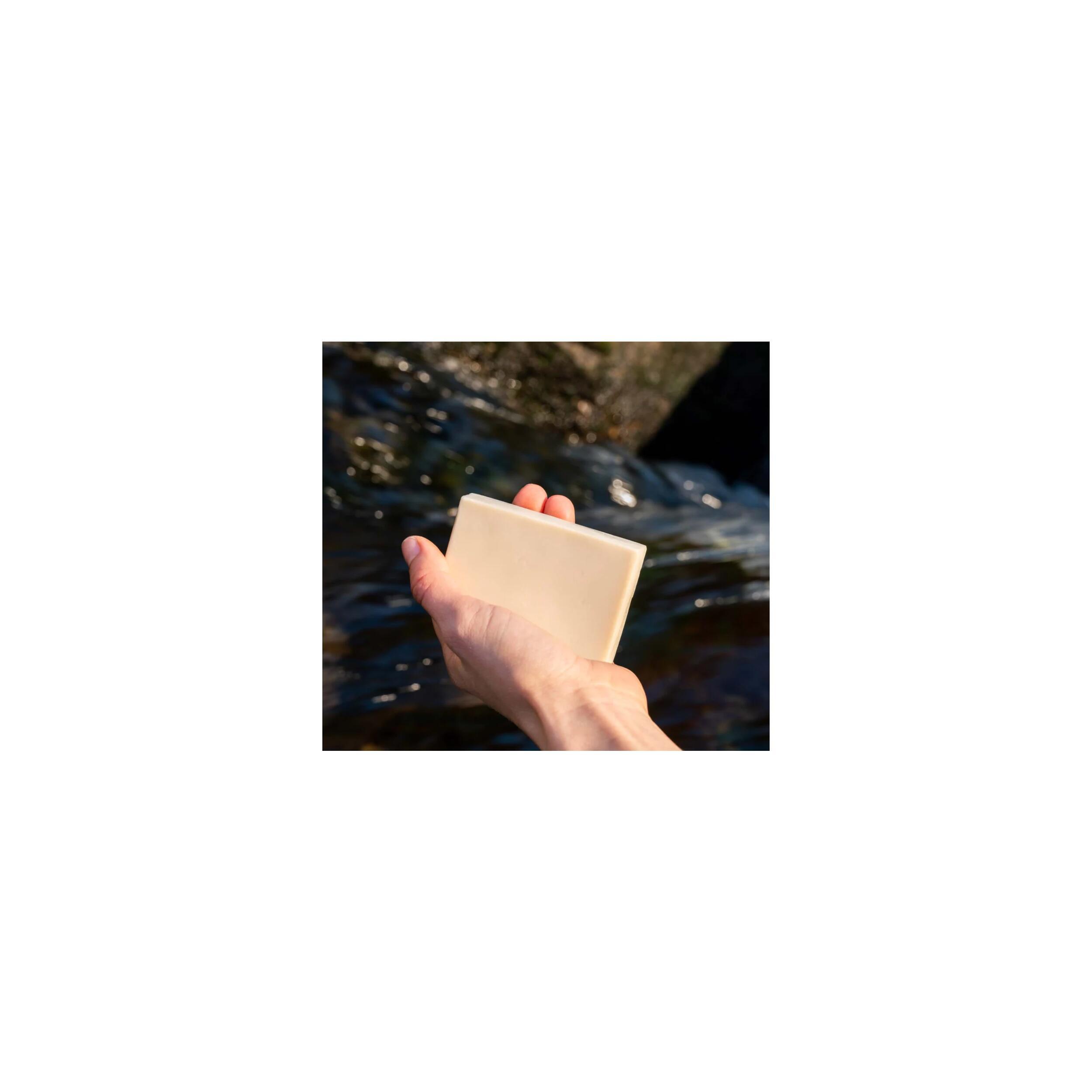 Fabriqué en France à partir d'ingrédients d'origine naturelle et entièrement biodégradables, ce pain solide est aussi respectueux de l'environnement. Utilisable en eau douce comme en mer, il se présente comme une solution durable pour votre hygiène quotidienne.
