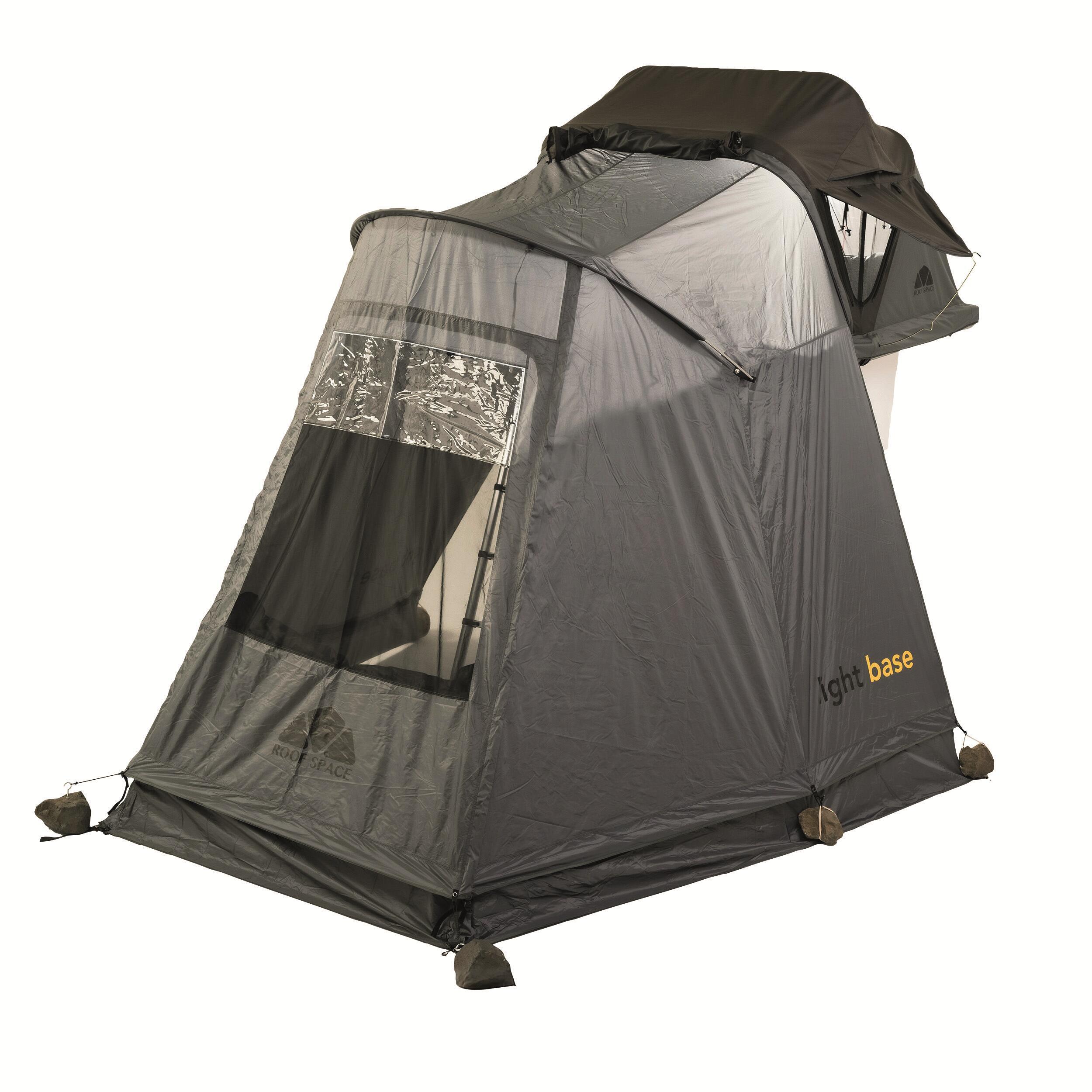 L'auvent Light Base, compatible avec la tente Roof Space 4, offre espace supplémentaire, protection contre les intempéries et intimité, avec une installation simple et des matériaux durables.