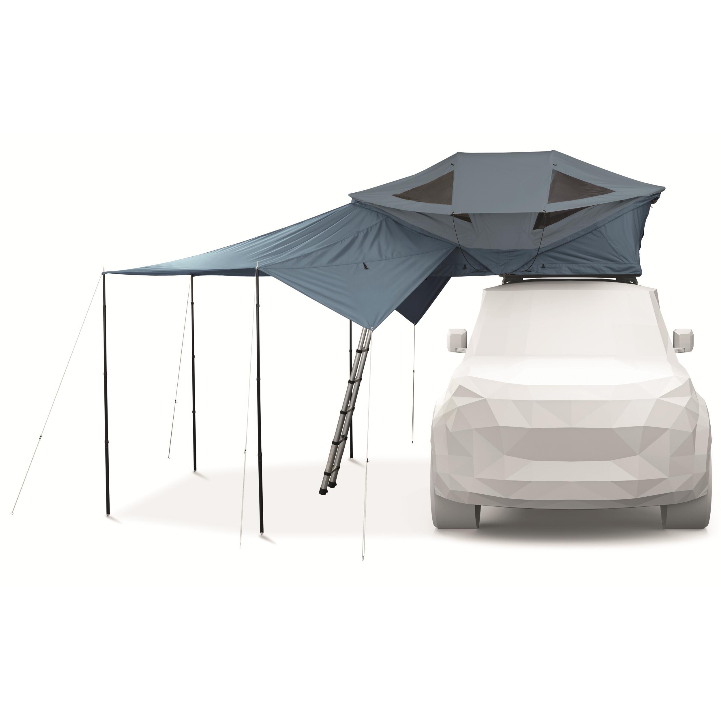 L'installation de l'auvent est un jeu d'enfant. Avec un système de fixation par zip à la tente de toit et des poteaux en aluminium robustes ajustables en hauteur, vous êtes prêt à affronter les éléments en un rien de temps. Ce système intuitif vous permet de passer plus de temps à profiter de votre environnement et moins de temps à vous préoccuper de l'installation.