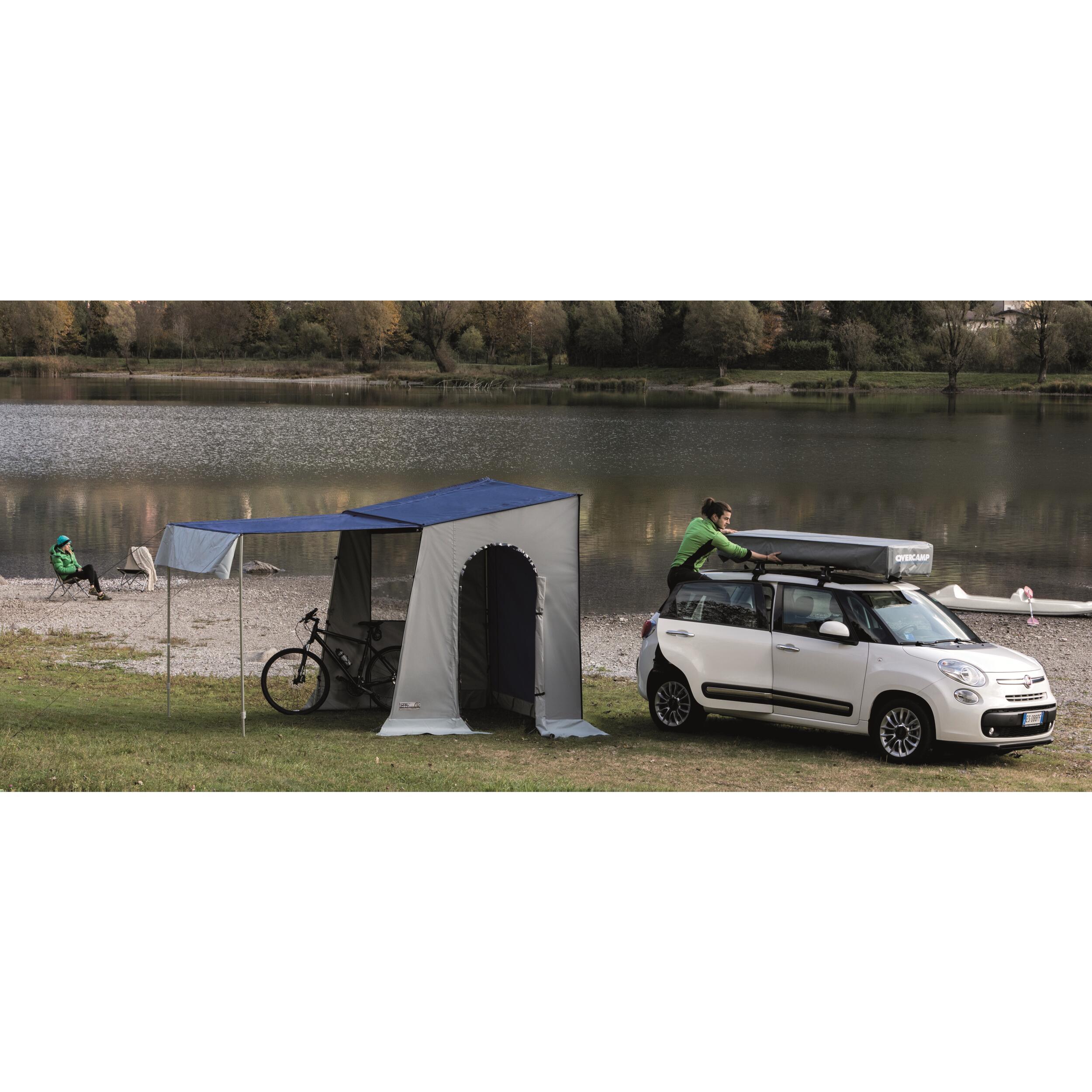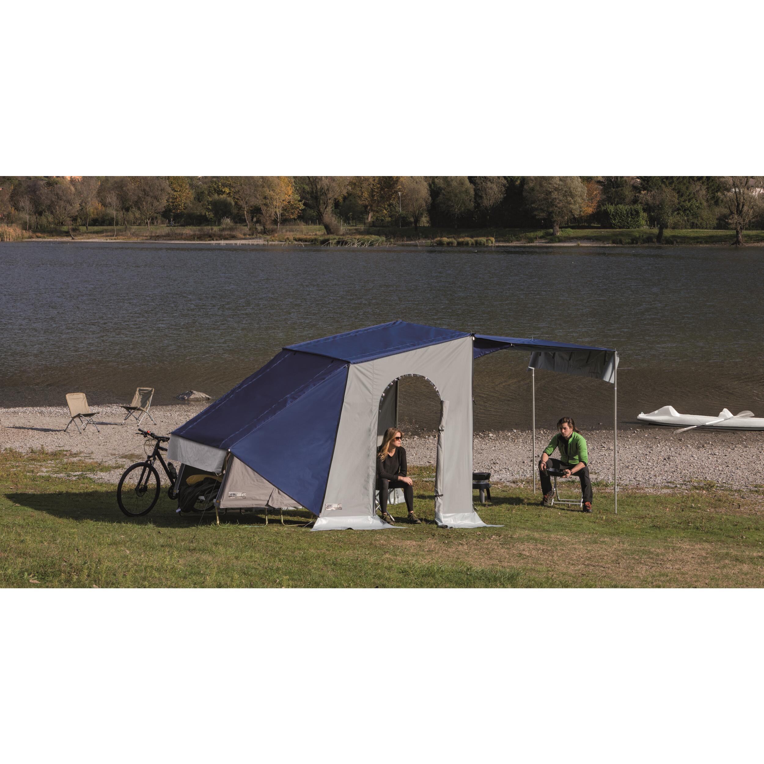 La véranda indépendante crée un espace de vie supplémentaire et protégé pour cuisiner, déjeuner, installer des couchages ou ranger vos équipements. La structure est indépendante, vous pouvez vous déplacer librement avec votre véhicule en laissant tout votre équipement à l'abri. Résistante aux rafales de vent, elle est facile à monter.