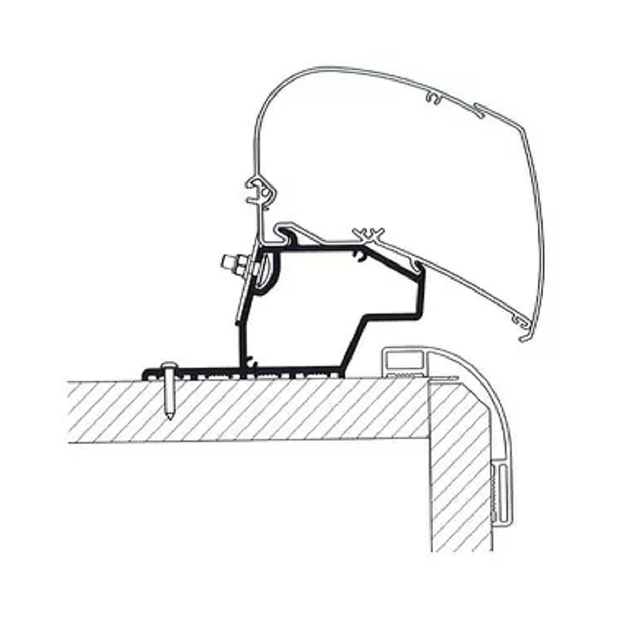 Adaptateur de toit Mobilvetta 2024 pour stores Omnistor 6300 et 9200, idéal pour une fixation solide et sûre sur camping-cars Mobilvetta.