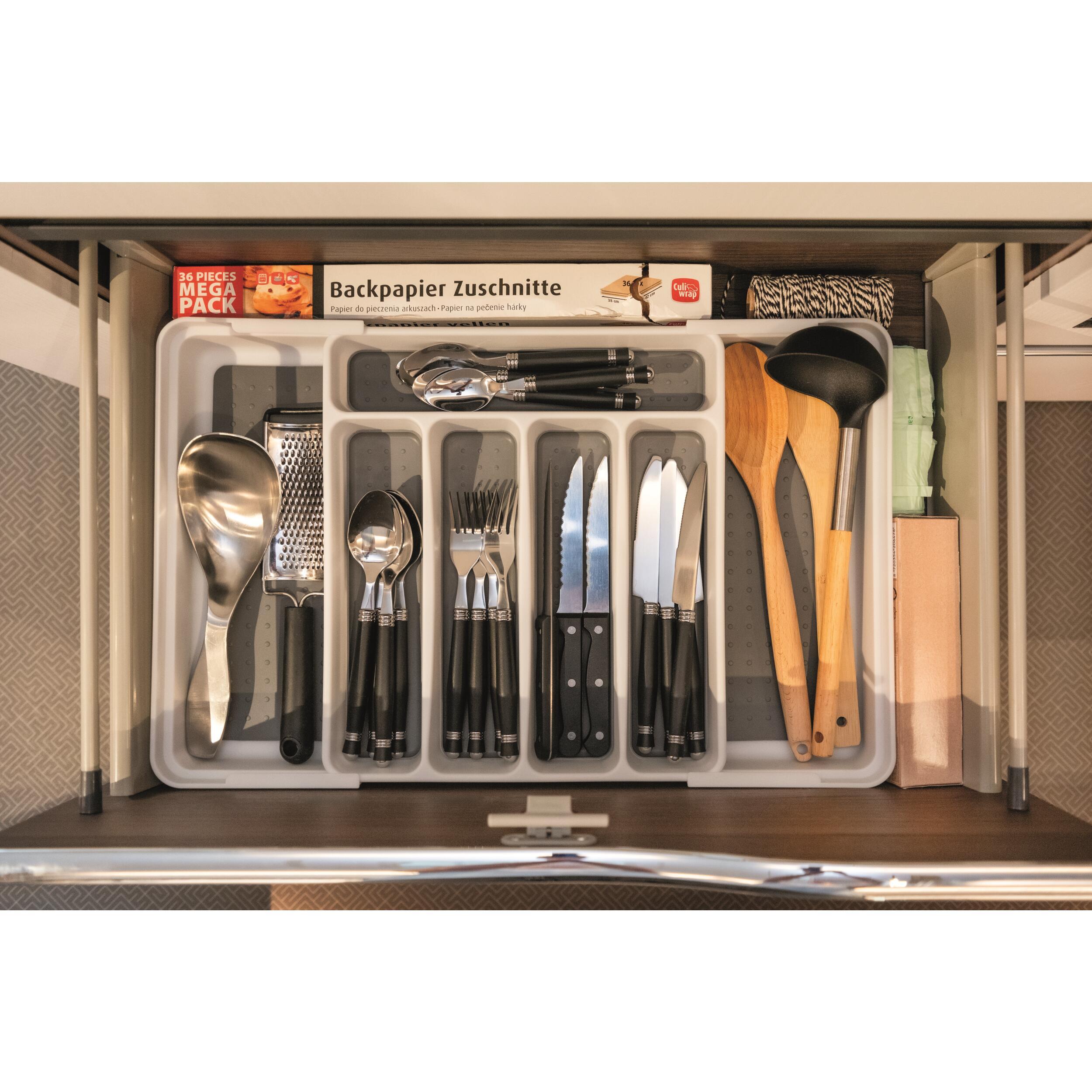 Le range-couverts extensible Spacer de la marque HABA est conçu pour s’adapter à la diversité des tiroirs de cuisine, que vous soyez en maison, appartement ou dans un véhicule de loisir comme un camping-car. Grâce à sa largeur ajustable, ce plateau peut s'étendre de 30 cm à 52 cm, offrant ainsi une flexibilité parfaite pour chaque espace de rangement. Peu importe la taille de votre tiroir, ce range-couverts trouvera sa place sans difficulté.