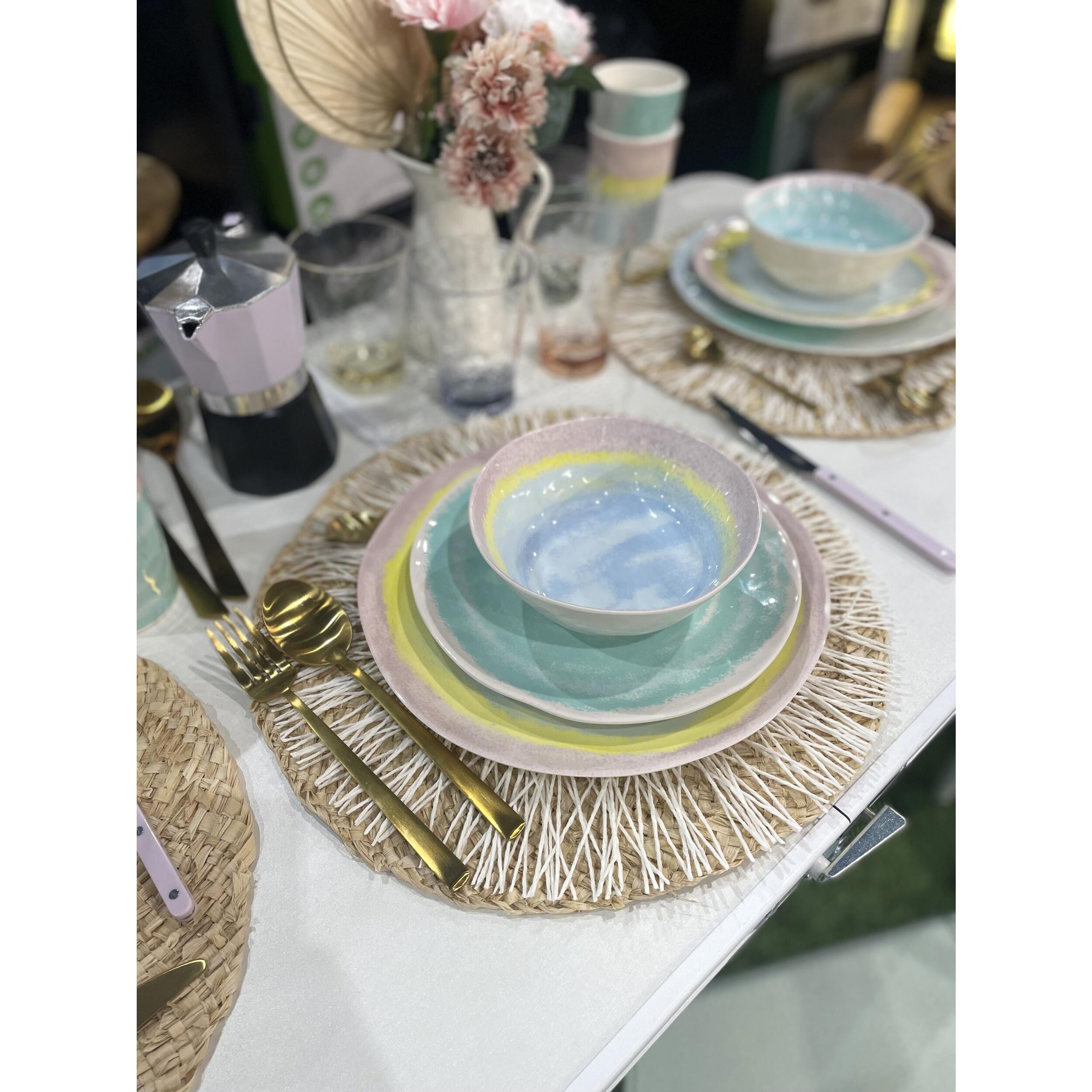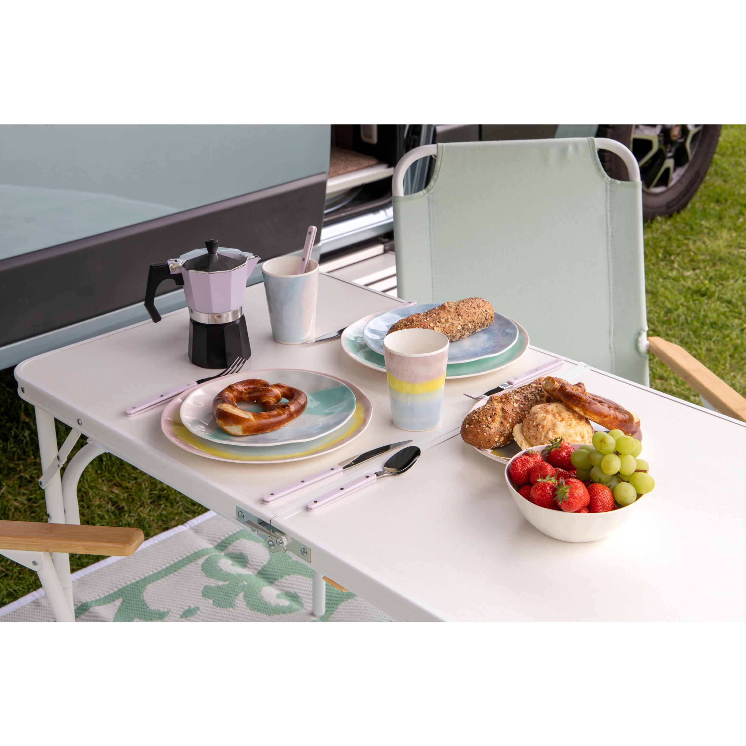 Le Pack de Vaisselle en Mélamine Pastel Barfleur - 12 Pièces de BoCamp est conçu pour sublimer vos repas en plein air. Avec son design moderne et ses couleurs pastel, cet ensemble apporte une touche d'élégance à vos tables de camping ou de jardin.