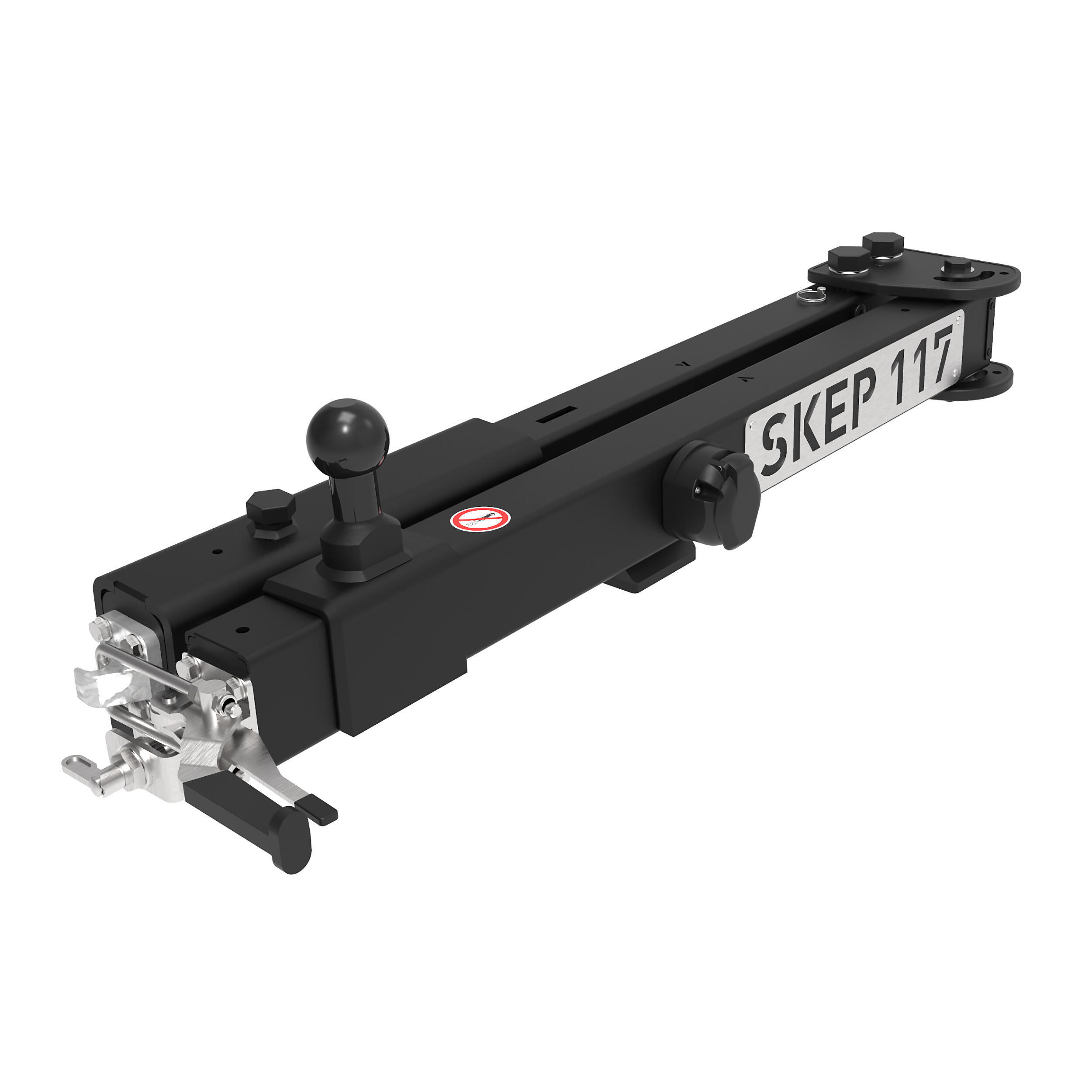 Bras pivotant Skep pour porte-vélos sur boule d’attelage. Pivot 117°, ouverture gauche ou droite, charge maximale 80 kg.
