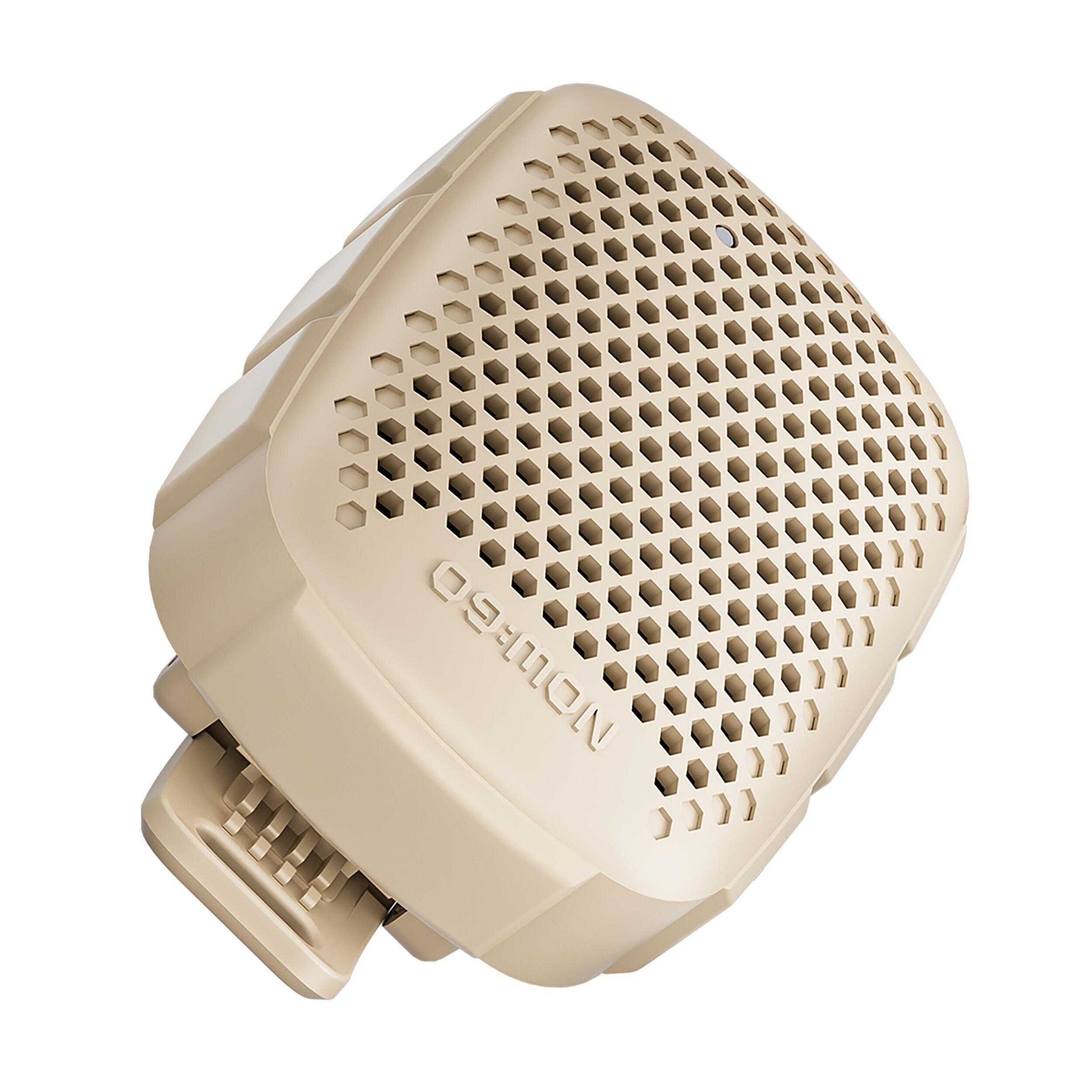 Enceinte Bluetooth ultra portable avec clip intégré, offrant un son clair et puissant, une fonction mains libres et jusqu’à 12 h d’autonomie.