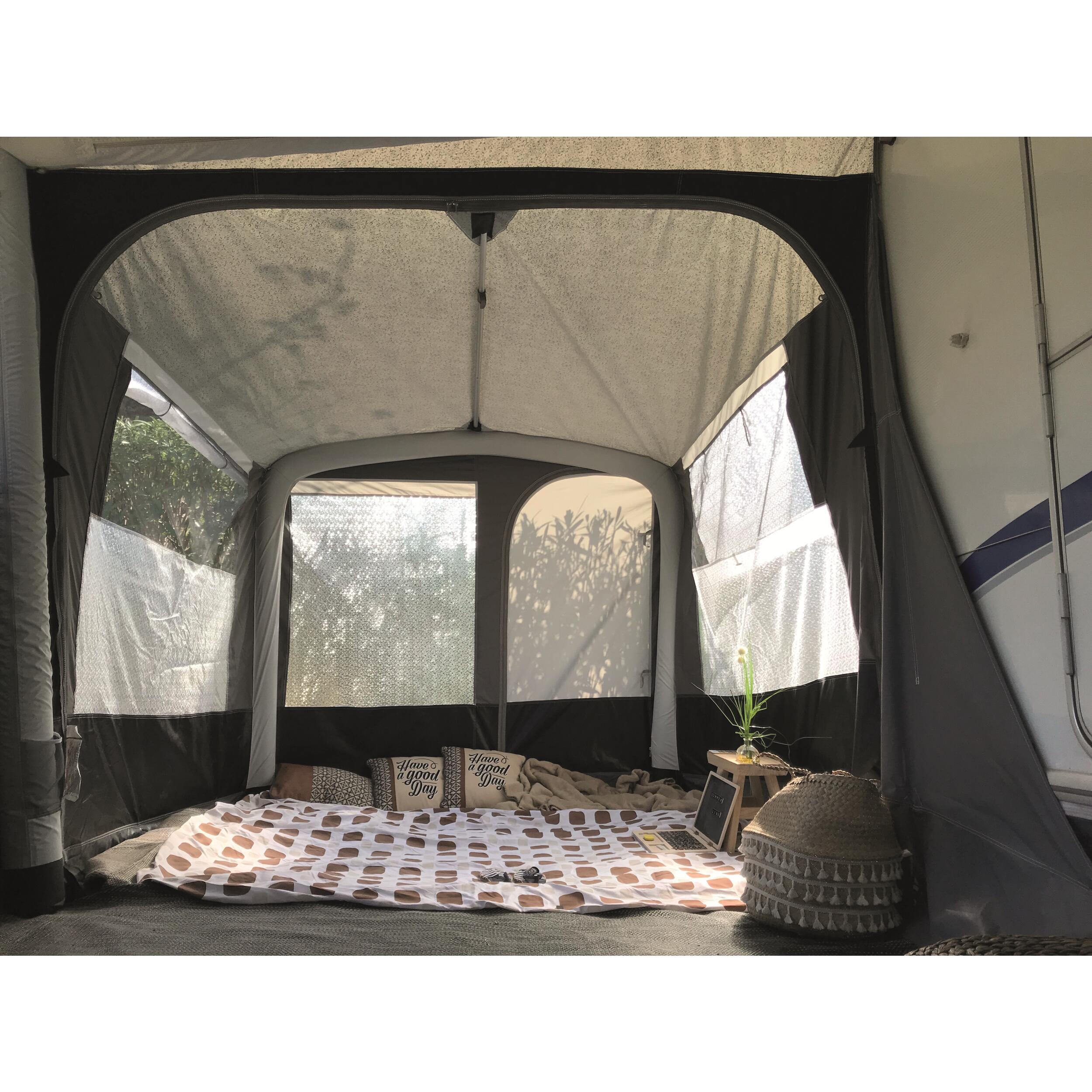 Pièce supplémentaire pour agrandir l'espace sous votre auvent. Peut être utilisée en coin cuisine, espace de rangement ou en coin nuit.