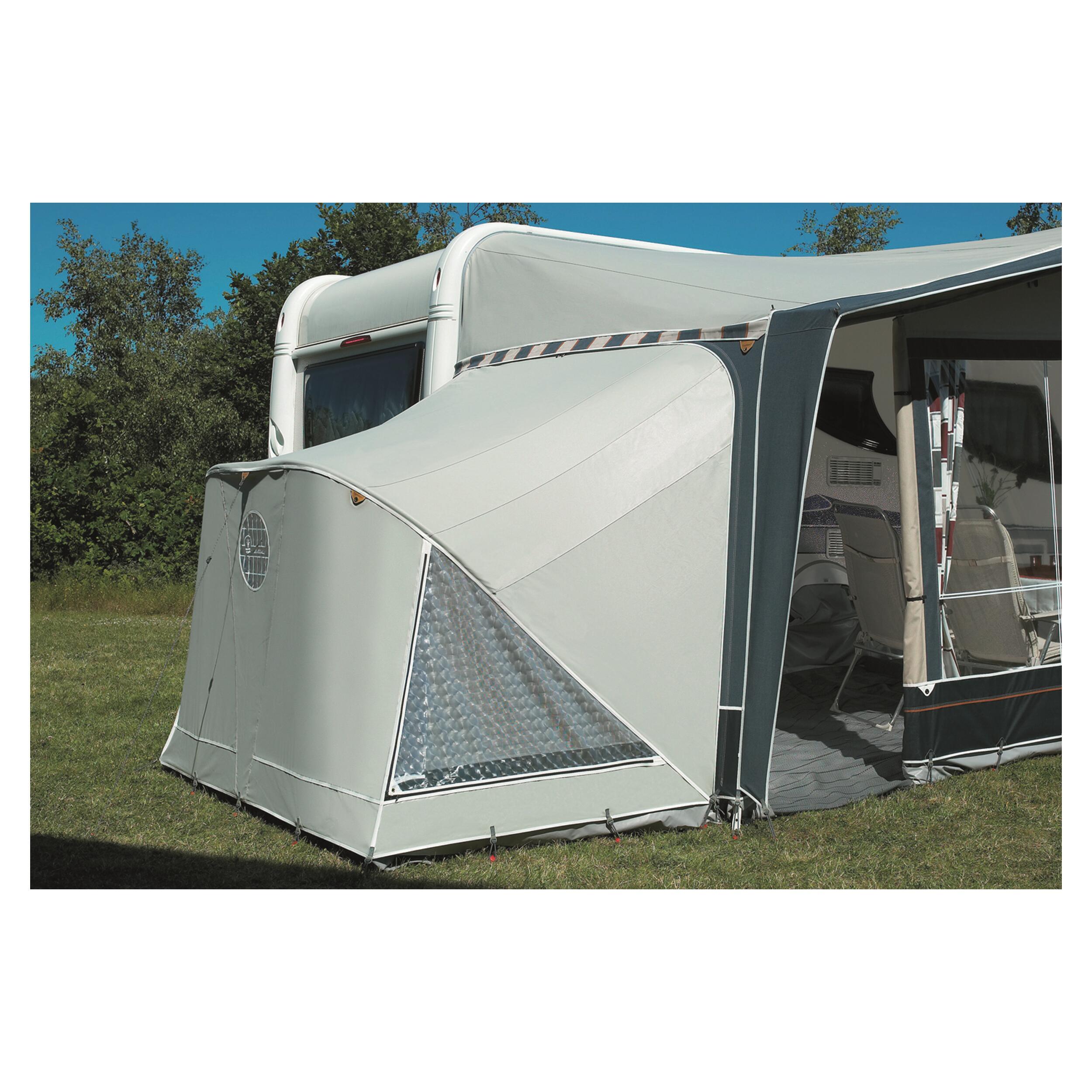 Toutes les pièces annexes Isabella sont équipées d'une double fermeture à glissières permettant de conserver le côté de l'auvent en tant que paroi de séparation. Pour cela, enlevez le côté de votre auvent, fixez la pièce annexe (équipée d'une double fermeture) à votre auvent et utilisez la deuxième fermeture à glissières pour fixer votre côté. Vous obtenez ainsi une annexe fermée avec porte d'entrée intérieure (Celle du côté de votre auvent).