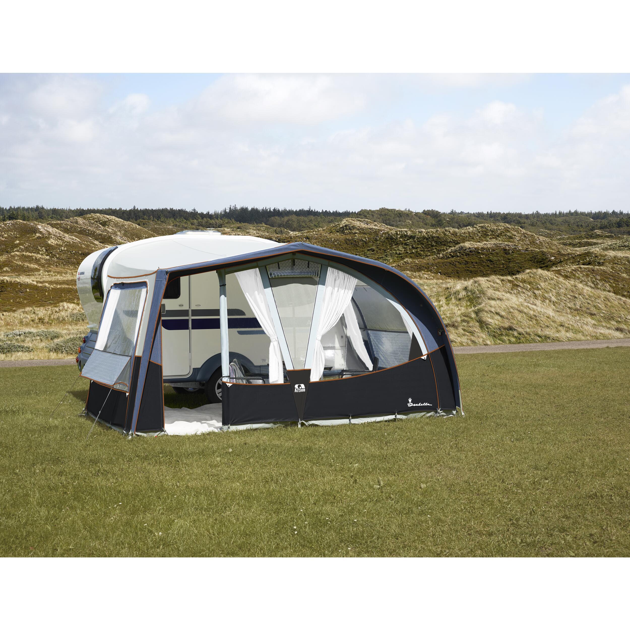 Isabella a conçu spécialement pour la caravane Adria Action391, un auvent élégant et fonctionnel avec un design correspondant parfaitement aux lignes de la caravane.