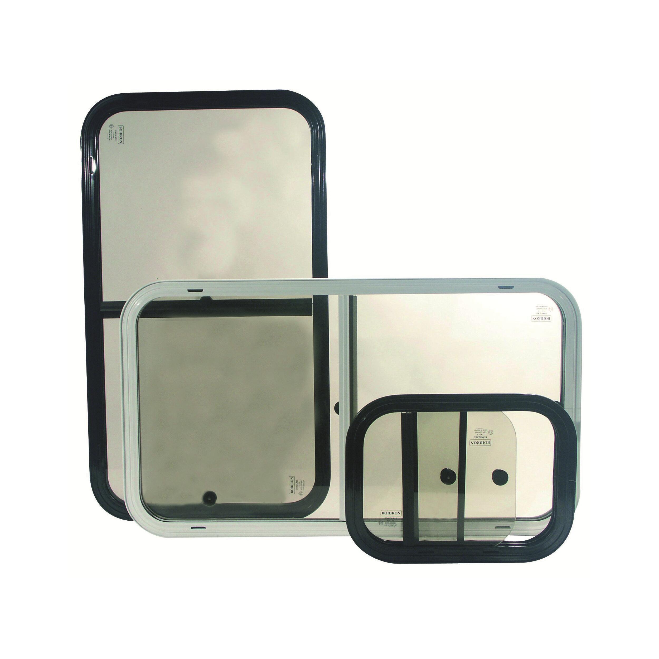 Facile à poser par simple collage en façade. Deux glaces coulissantes en verre Sécurit® légèrement teinté pour protéger votre intimité.