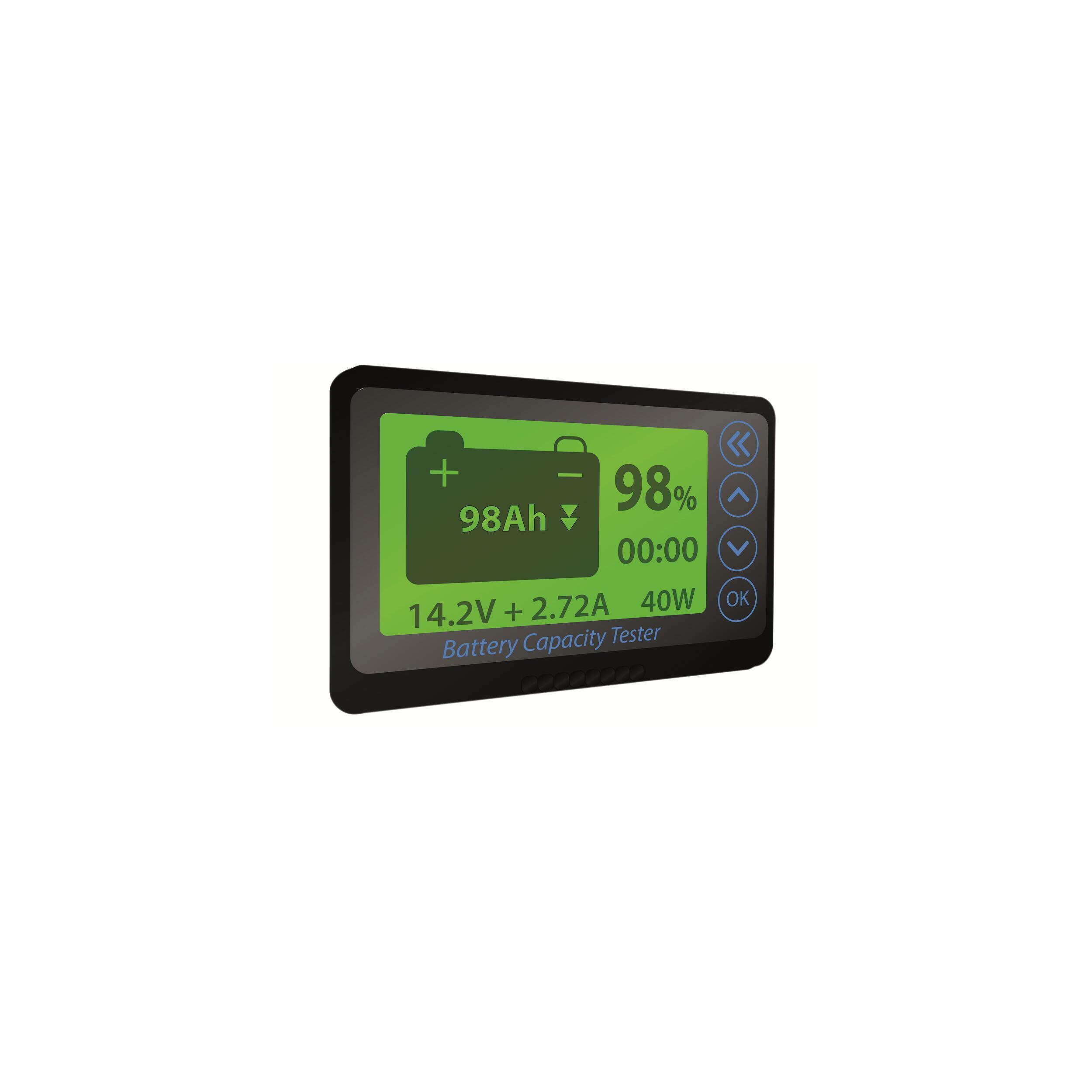 Afficheur-contrôleur EZA compatible tout type de batterie, équipé d’une interface de mesure de type shunt. Avec son écran LCD et la batterie symbolisée, les informations essentielles sont claires : niveau de charge en Ampères et en pourcentage, tension de l’accumulateur, puissance instantanée exprimée en watts et en ampères. De même, durant la recharge le temps restant avant pleine charge est indiqué. Une série de touches sensitives placées sur le côté de l’écran vous permettront de naviguer dans les paramètres. Branchements et montage simples et rapides.