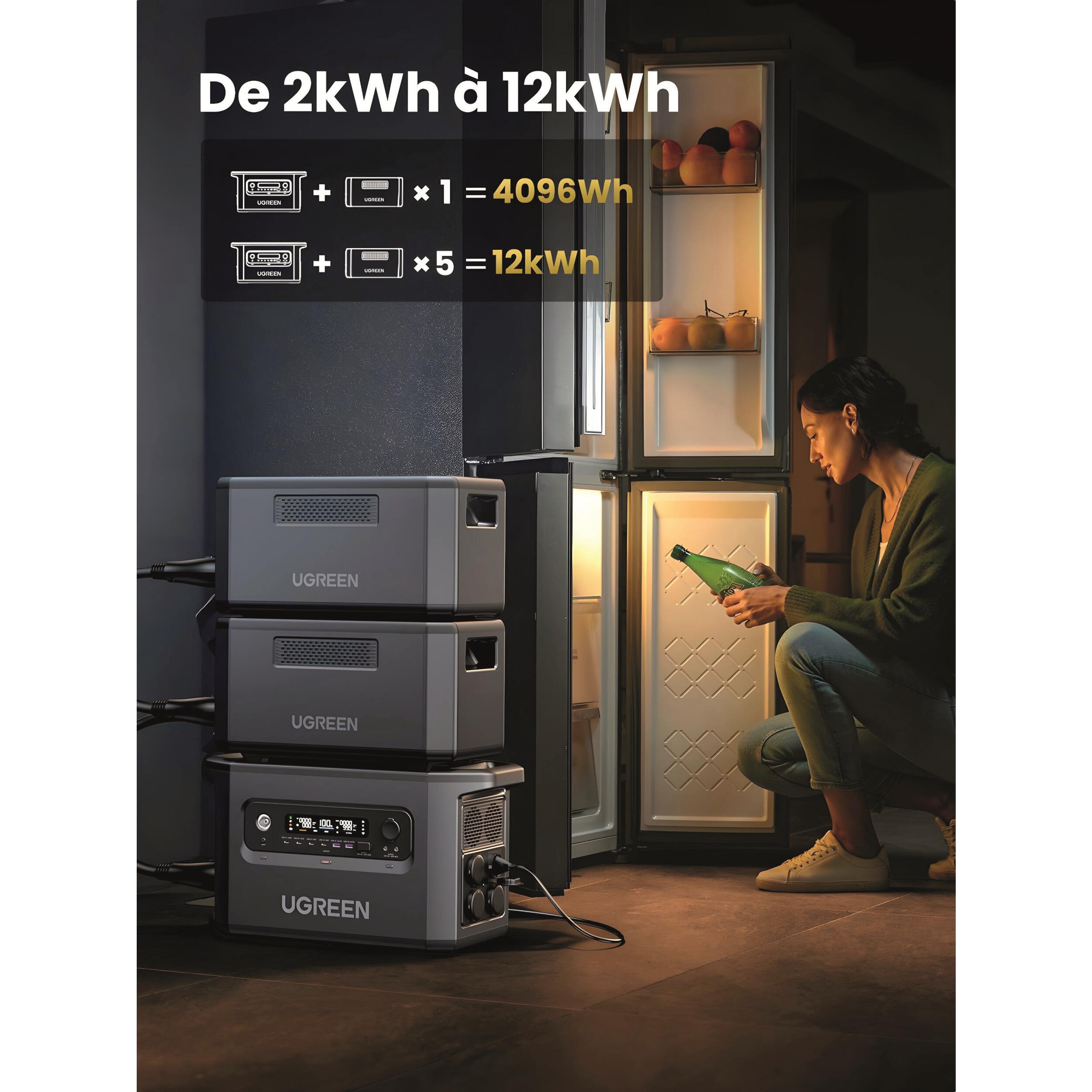 La batterie d’extension UGREEN EB2200 est spécialement conçue pour la centrale électrique portable GS2200, apportant une capacité supplémentaire de 2048Wh grâce à la technologie avancée LiFePO4. Cette batterie est une solution idéale pour les voyageurs, les campeurs ou ceux qui recherchent une source d’énergie fiable lors de séjours prolongés hors des réseaux classiques. Avec une capacité de coupler jusqu’à 5 batteries EB2000, vous pouvez faire évoluer votre système jusqu’à 12kWh, garantissant ainsi une autonomie impressionnante pour vos appareils et équipements.