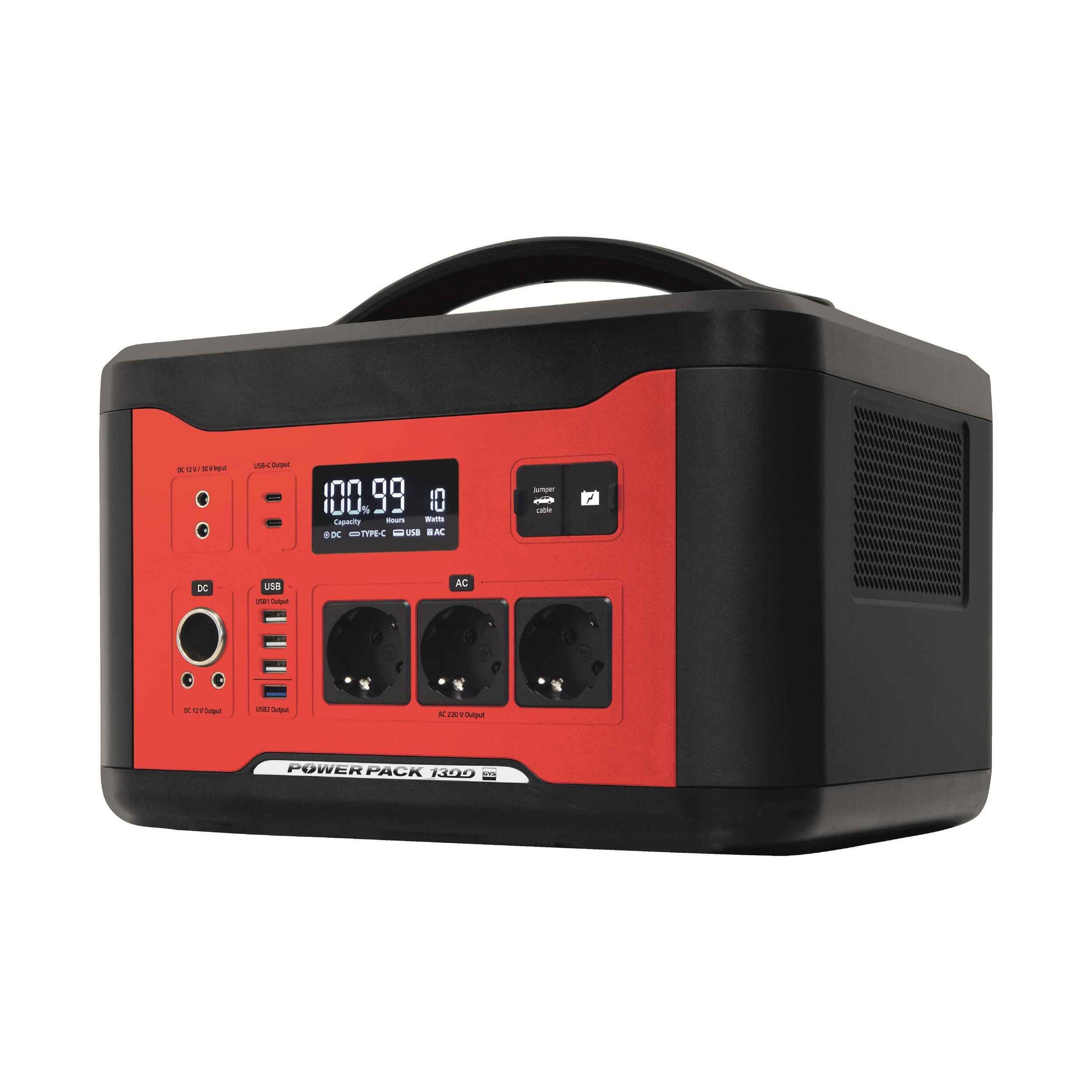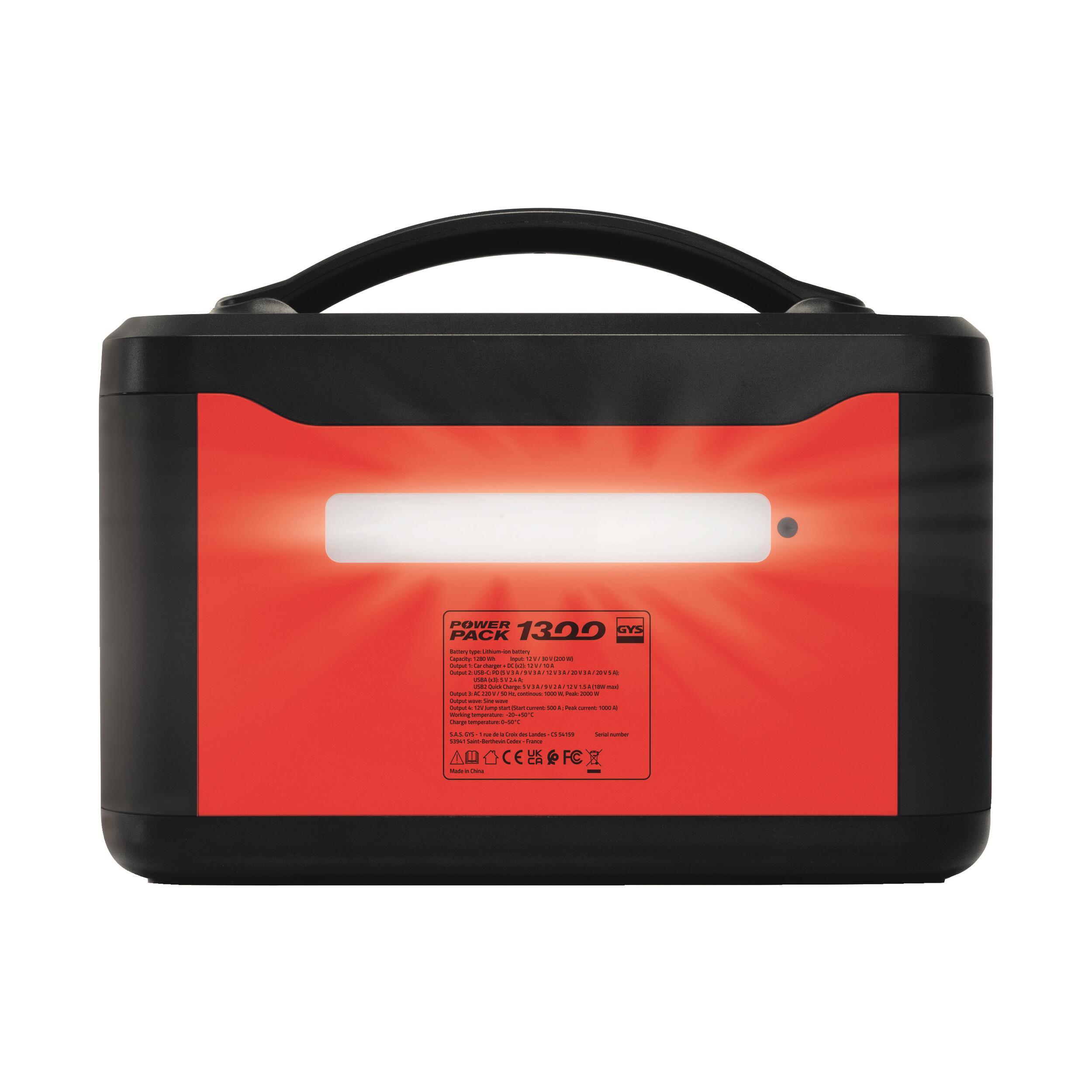 Le POWER PACK 1300 est une station d’énergie portable qui combine une batterie LithiuLiFePO4 et un convertisseur Pur Sinus pour recharger ou alimenter tous types d’appareils électroniques (1000 W en continu, 2000 W en crête). Il restitue une tension continue de 12 V et une alimentation 230 Vac. Sa grande capacité de stockage lui confère l’autonomie nécessaire pour maintenir la plupart des appareils électriques chargés ouben fonctionnement en toutes circonstances. Il est également un booster pour véhicules 12 V.