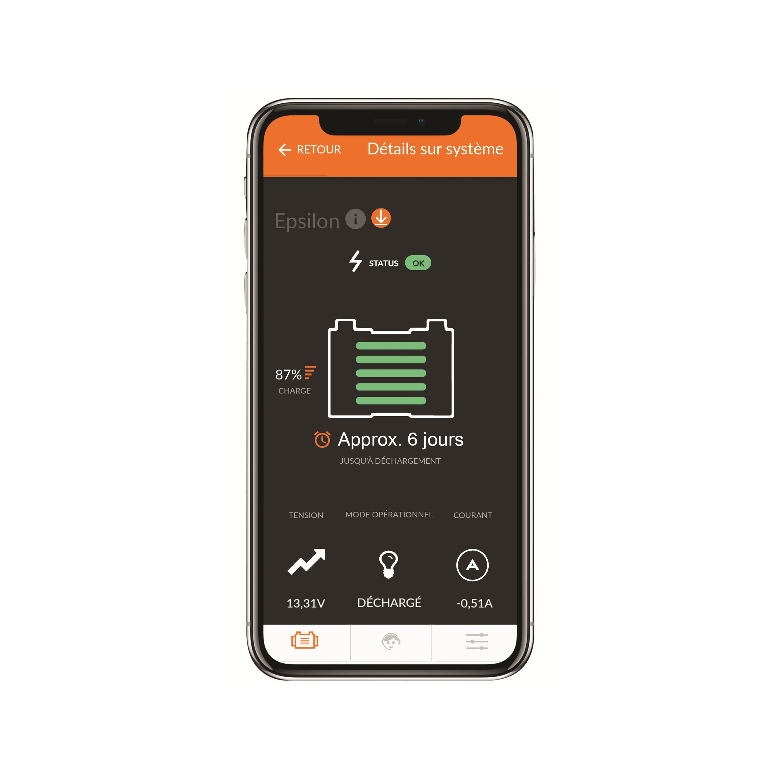 Les batteries Epsilondisposent d’une surveillance intégrée de la batterie qui fournit des détails sur son état, tels que la tension, le courant, la température, l’état de charge et le temps restant. Le suivi pratique est également possible via bluetooth et des indicateurs LED pour vous informer de l’état réel de votre batterie. La fonctionnalité de chauffage entièrement automatique permet de charger et d’utiliser la batterie par temps de gel.
