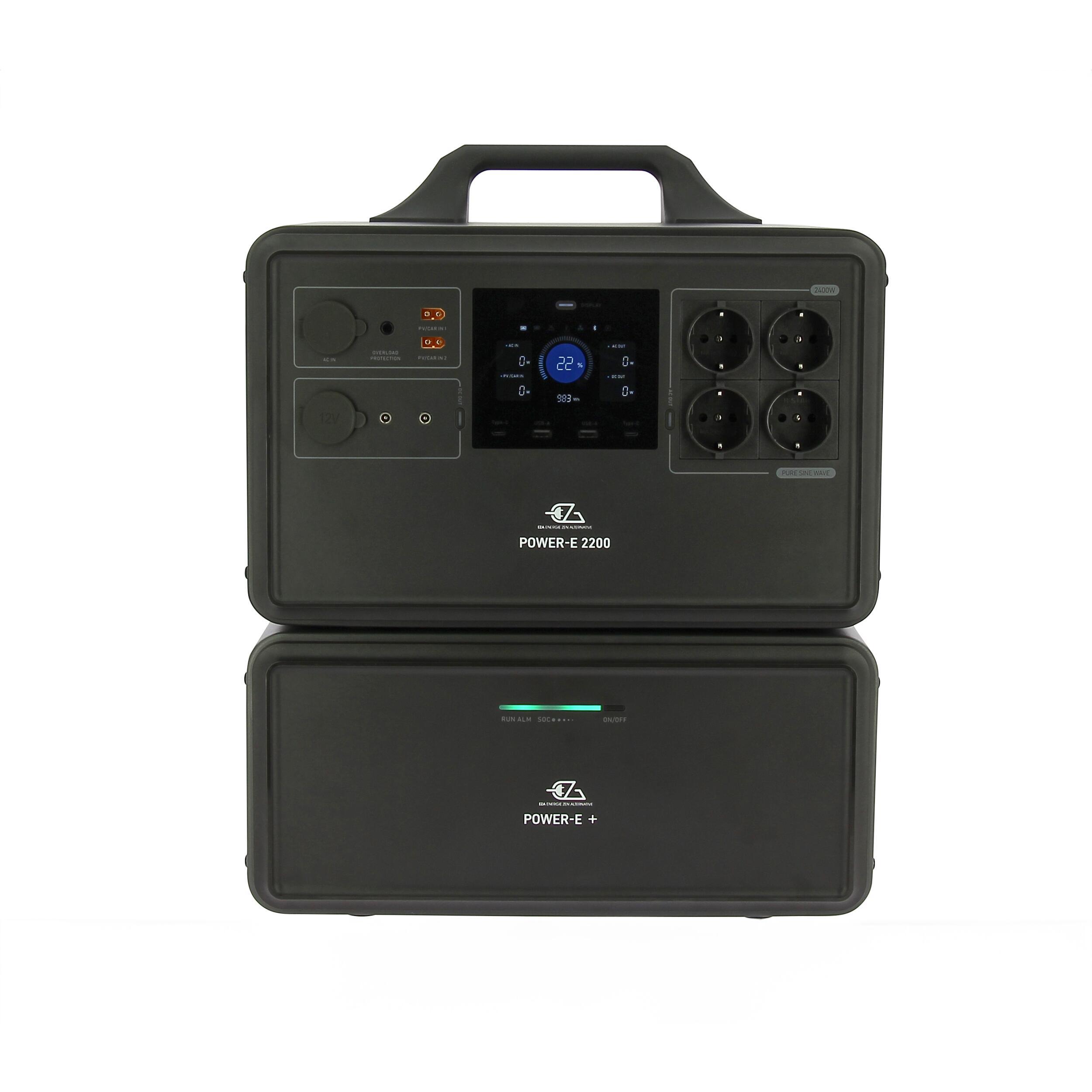 Optimisez votre autonomie énergétique avec l’extension Power Station POWER-E+ de la marque EZA, spécialement conçue pour compléter la Power Station POWER-E 2200 et vous offrir encore plus de puissance en déplacement.