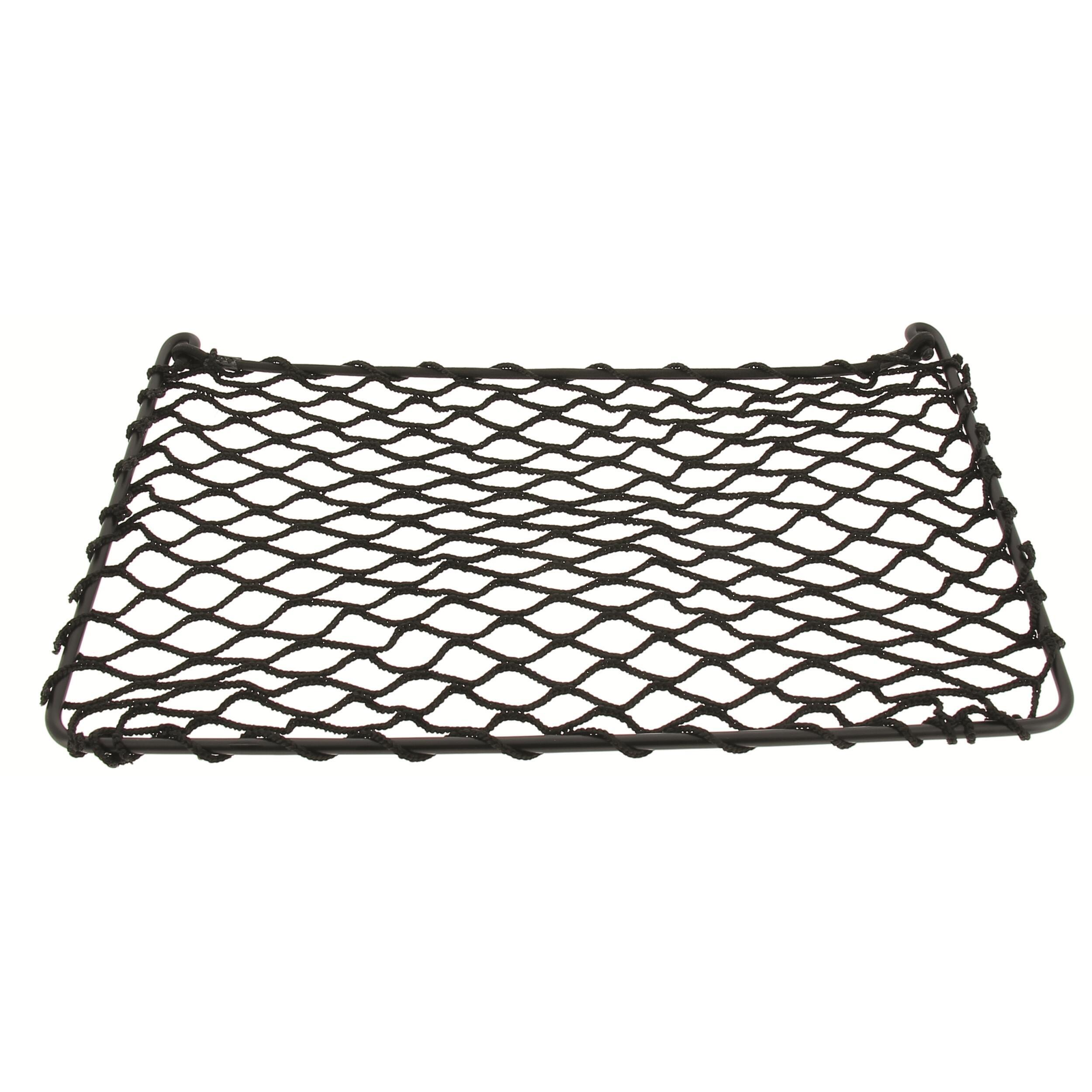 Pratique pour le rangement. Filet polypropylène noir assemblé sur cadre métallique revêtu de plastique noir.