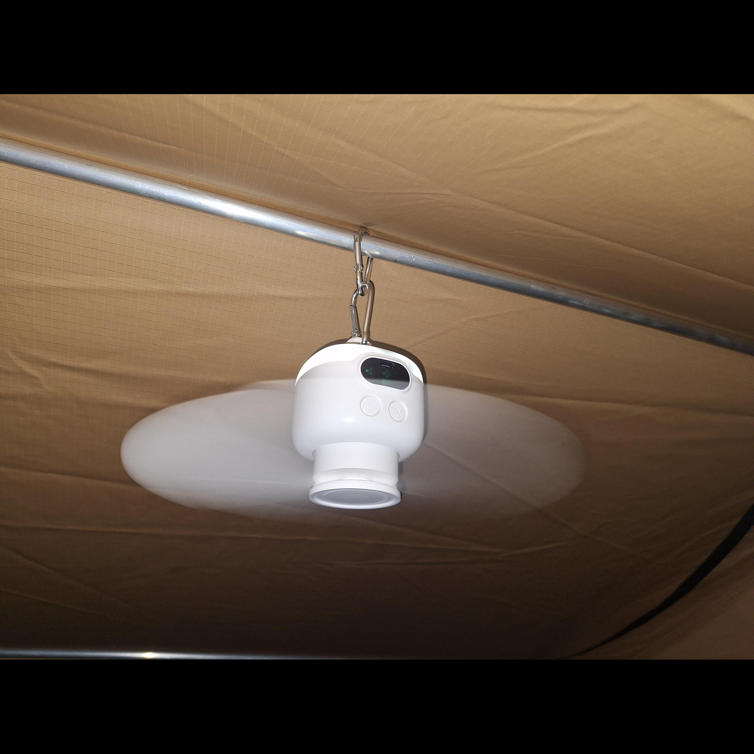 Le ventilateur BayaSun intègre une lampe LED discrète mais efficace. Elle éclaire sans éblouir, ne chauffe pas et surtout, n’attire pas les insectes. Cette fonctionnalité est particulièrement utile pour créer une ambiance paisible dans votre coin nuit ou pour lire sous la tente. La LED fonctionne indépendamment du ventilateur, ce qui vous permet de profiter uniquement de la lumière si besoin.