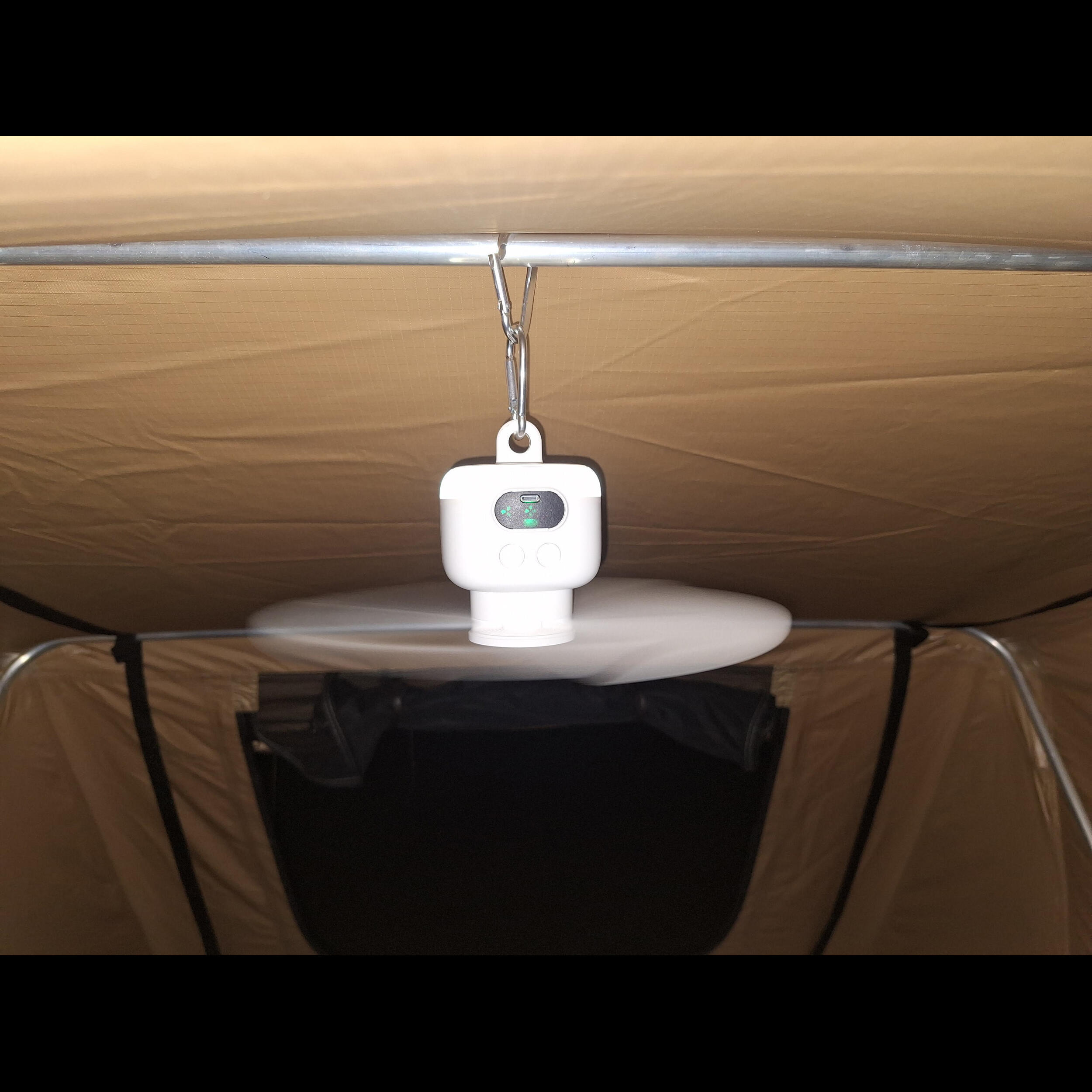 Son design nomade (Ø27 cm x H11,4 cm) et sa légèreté (400 g) facilitent le transport et l’installation, que ce soit au-dessus de votre lit, dans une capucine ou dans une tente de toit. Grâce à sa batterie Li-ion de 8000 mAh, il assure plusieurs soirées de ventilation sans recharge, et ce, en toute autonomie grâce à son port USB-C compatible avec les batteries externes ou les prises véhicules.