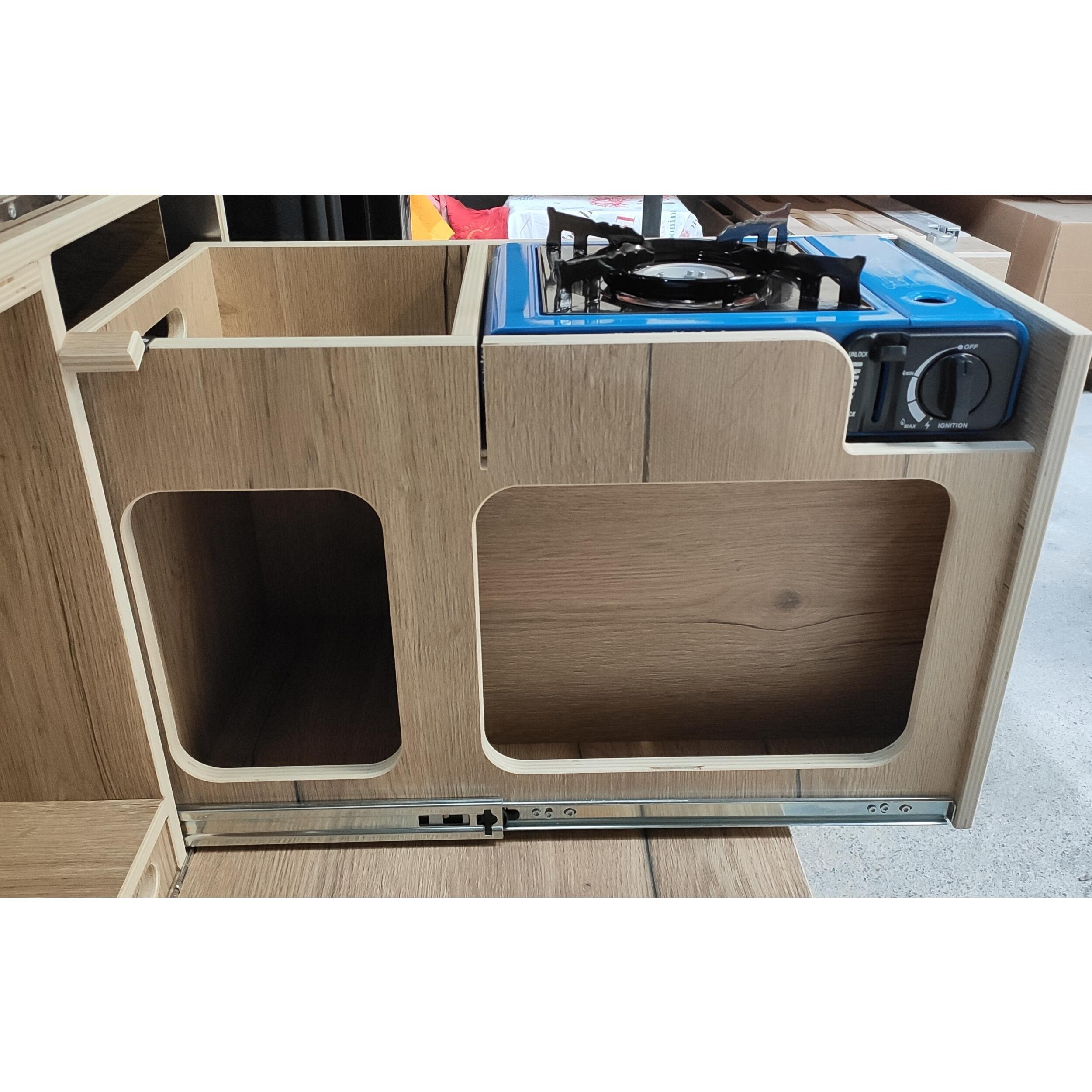 1 trappe coulissante (50x34 cm) à l'arriére du caisson permet de comuniquer aux places arriéres