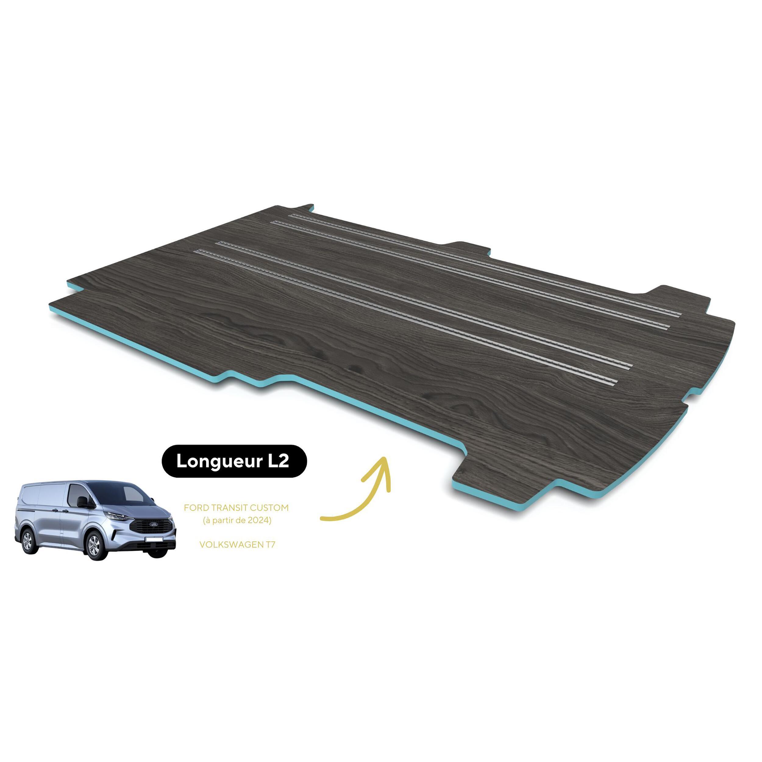Ce plancher composite est découpé précisément pour s’adapter parfaitement aux Ford Transit Custom à partir de 2024 et Volkswagen T7, garantissant une intégration parfaite sans ajustement supplémentaire.