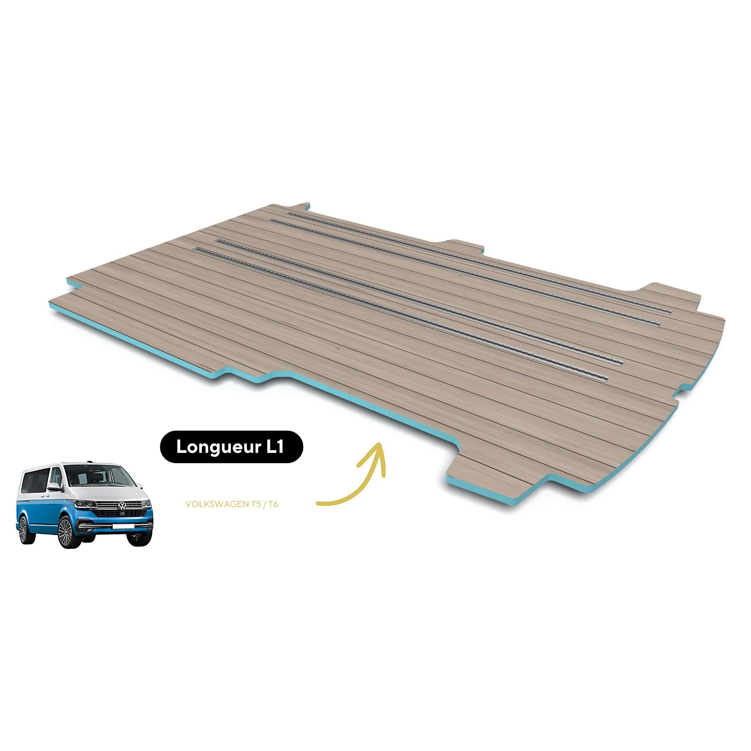 Conçu pour un ajustement parfait aux Volkswagen T5 et T6, ce plancher est prédécoupé aux dimensions exactes du véhicule, évitant ainsi les pertes de temps et les découpes fastidieuses.