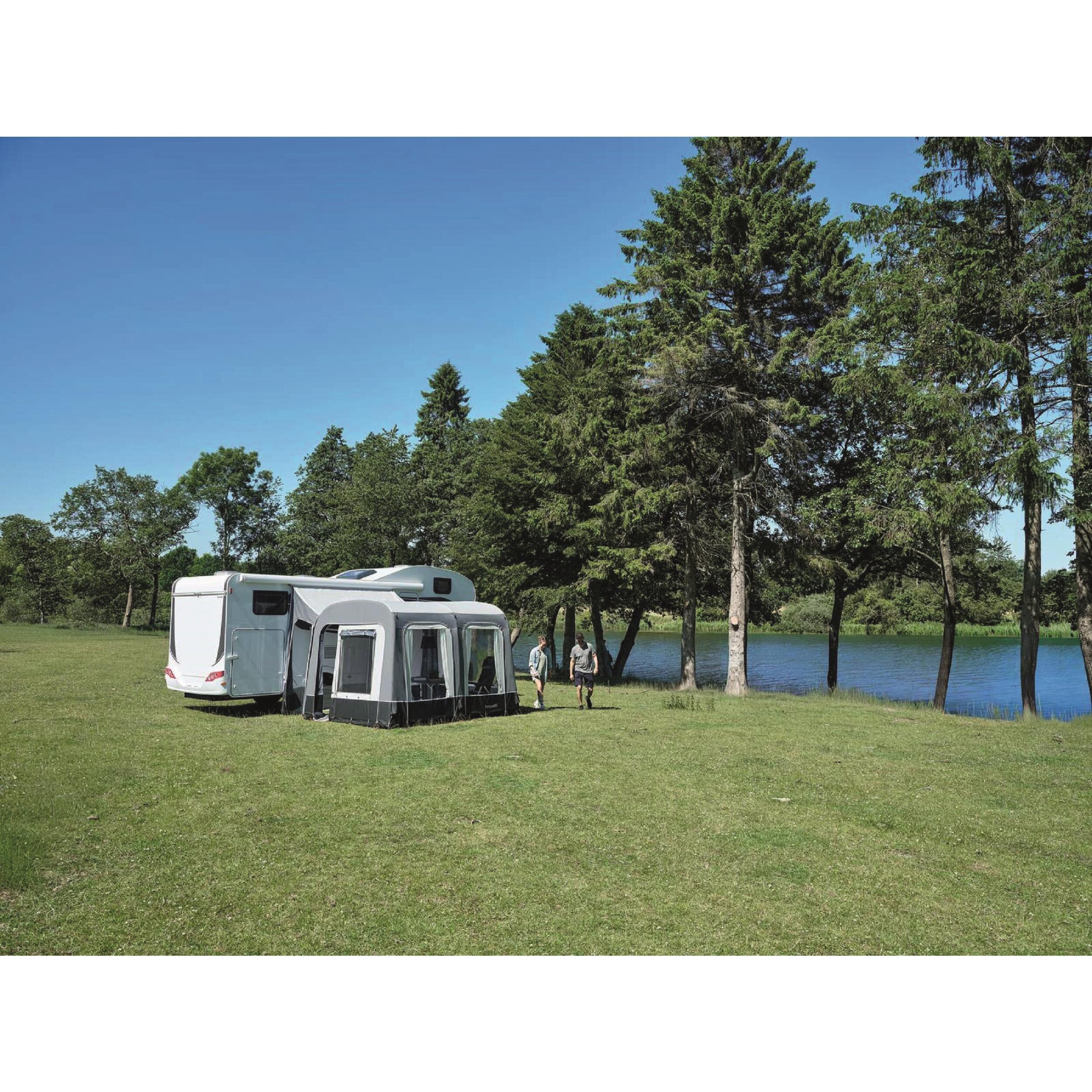 Auvent gonflable autoportant pour camping-car et van – connexion via tunnel modulable, structure à air connecté, montage rapide et ventilation intégrée.