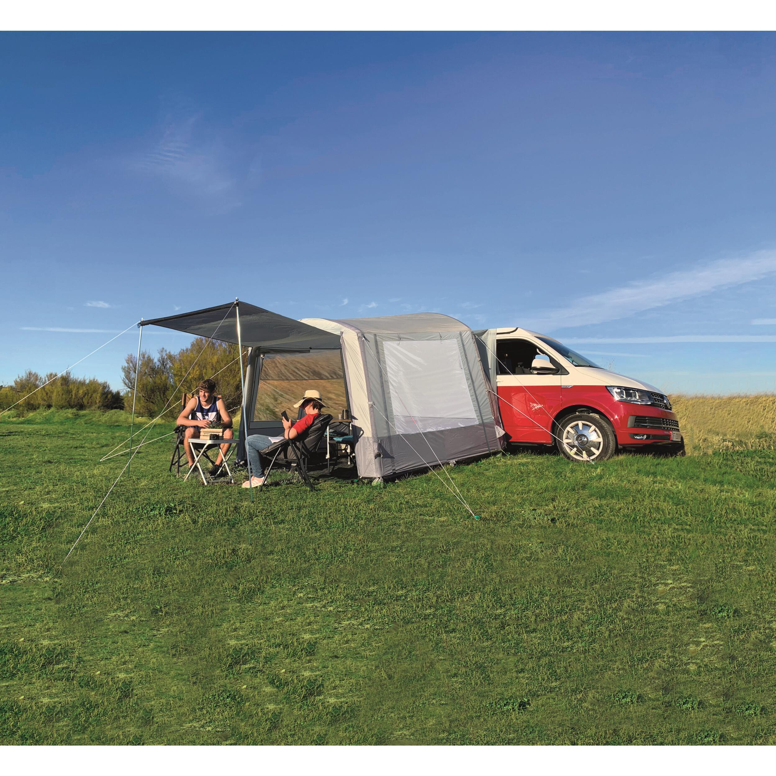 Auvent gonflable indépendant multi-usage utilisable comme abri extérieur, tente ou auvent pour mini van compatible de 180 à 210 cm.
