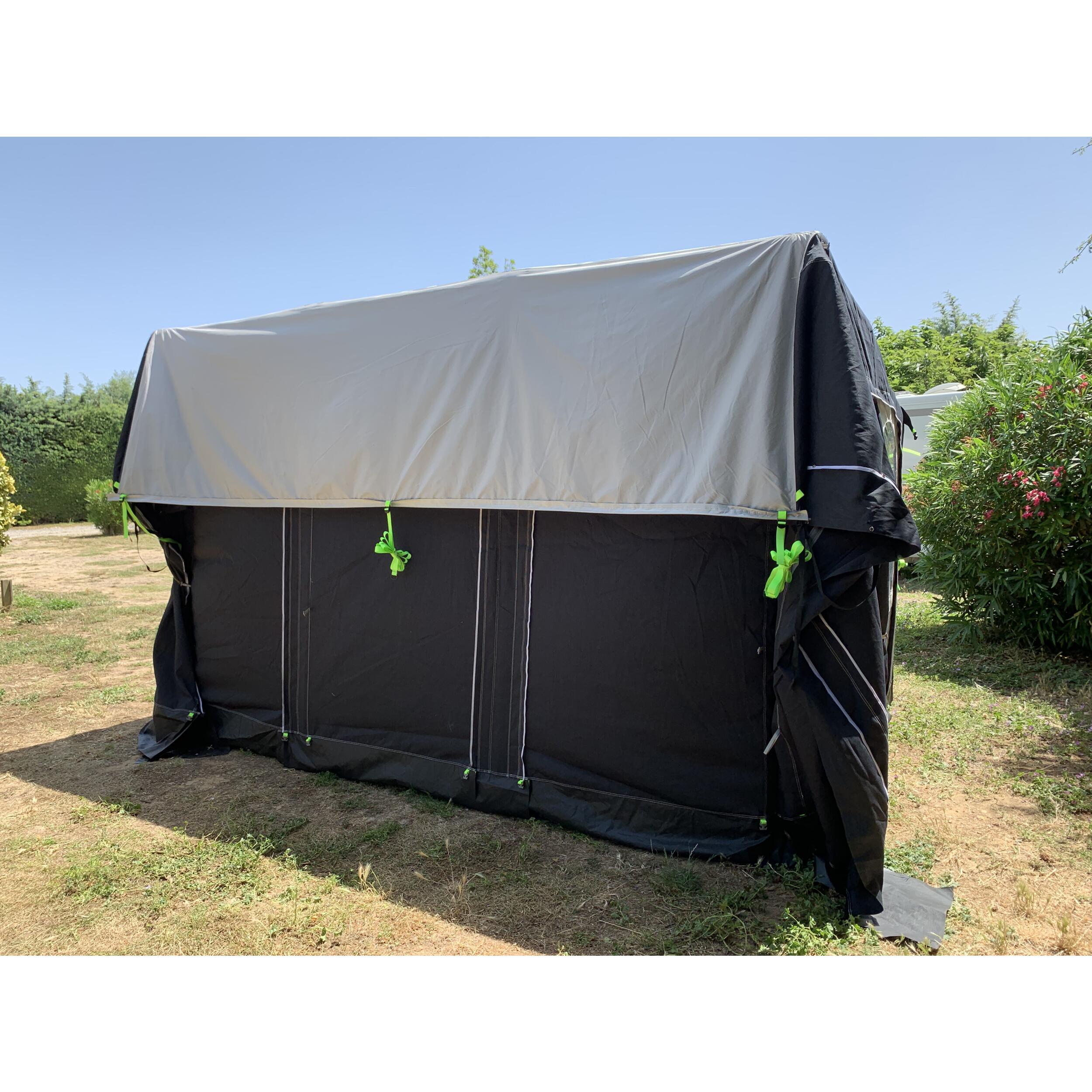 Les rideaux intégrés en façade et sur les côtés renforcent votre intimité sans compromettre la lumière naturelle. Et grâce aux nombreuses options disponibles, vous pouvez encore améliorer votre confort au fil des saisons et des destinations. Tapis de sol, annexes, kit de fixation indépendant… tout est pensé pour personnaliser votre expérience.