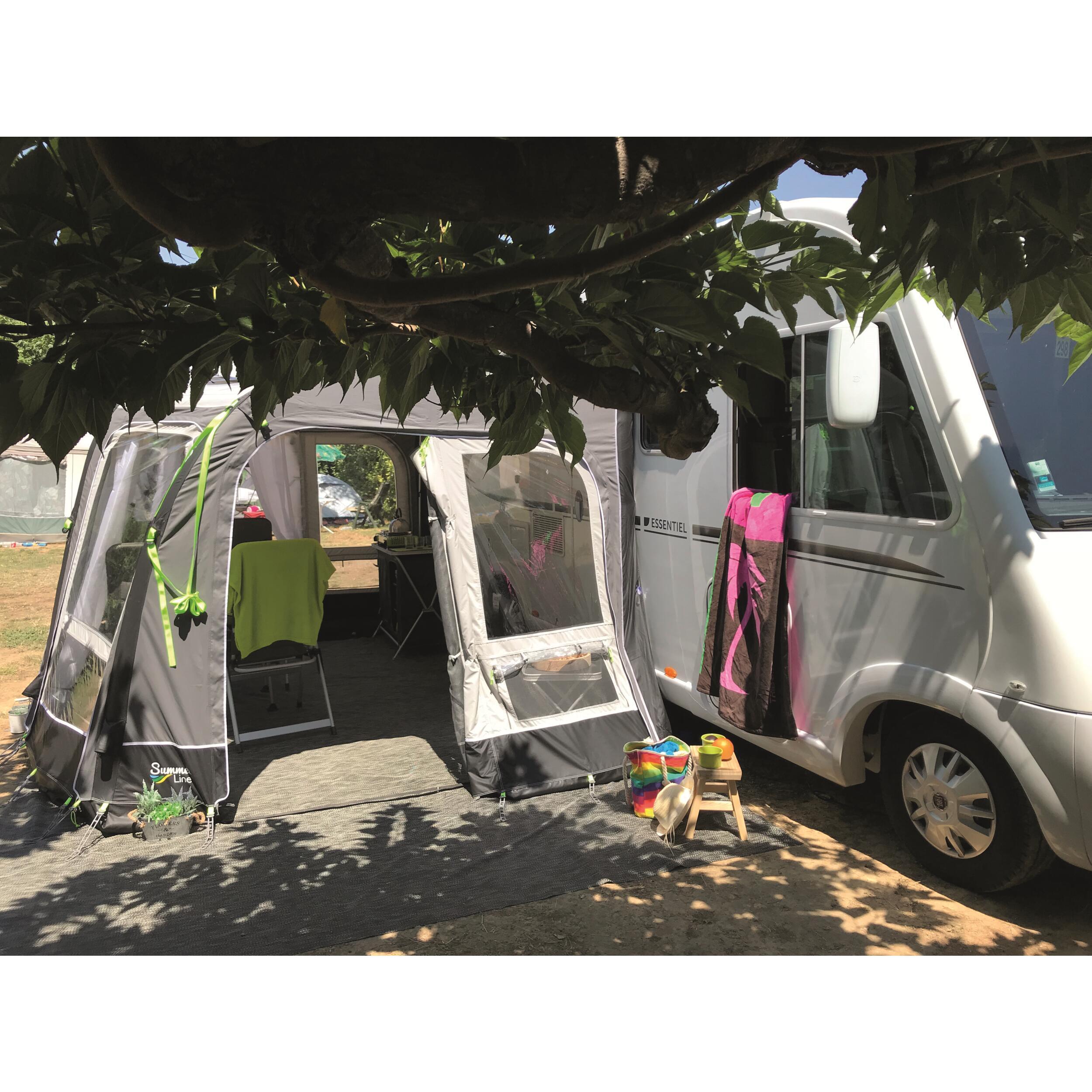 L'auvent Pampeo est un auvent gonflable haut de gamme pour Camping-car. Ses dimensions vous offrent un espace de vie supplémentaire de 12 m2 que vous pourrez agrandir en rajoutant une pièce annexe sur l'un ou l'autre des côtés.