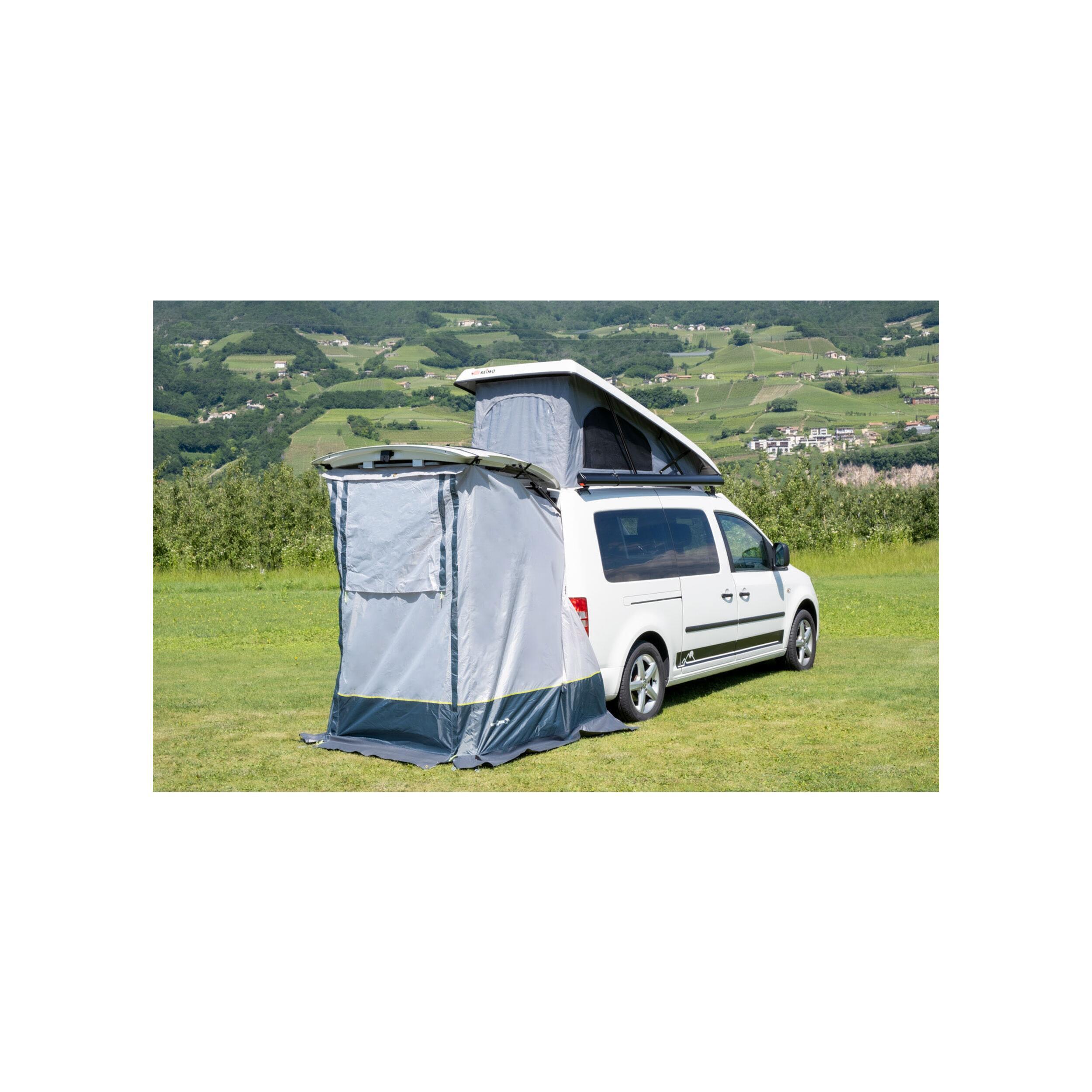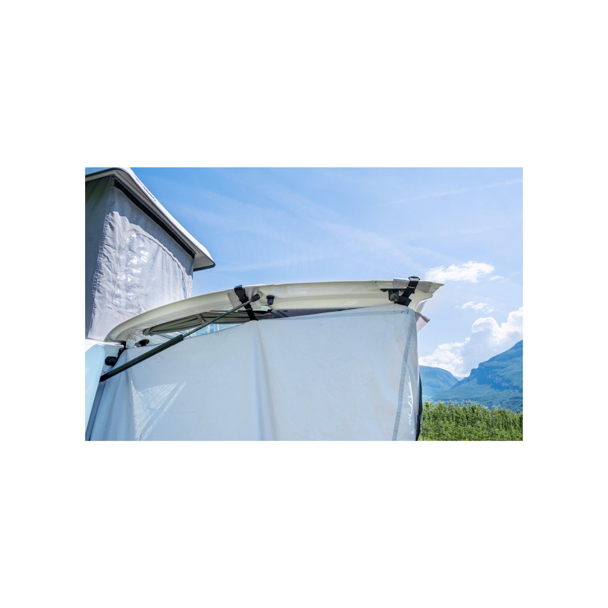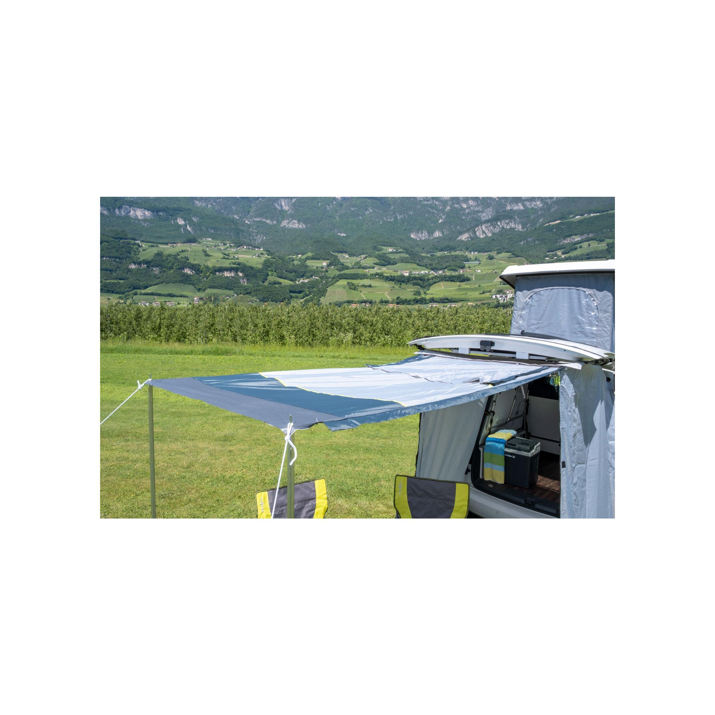 Agrandissez votre espace de vie et améliorez votre confort pendant vos vacances grâce à cet auvent pour hayon arrière pour fourgon Volkswagen CADDY. Montage simple et rapide, construction sans cadre !