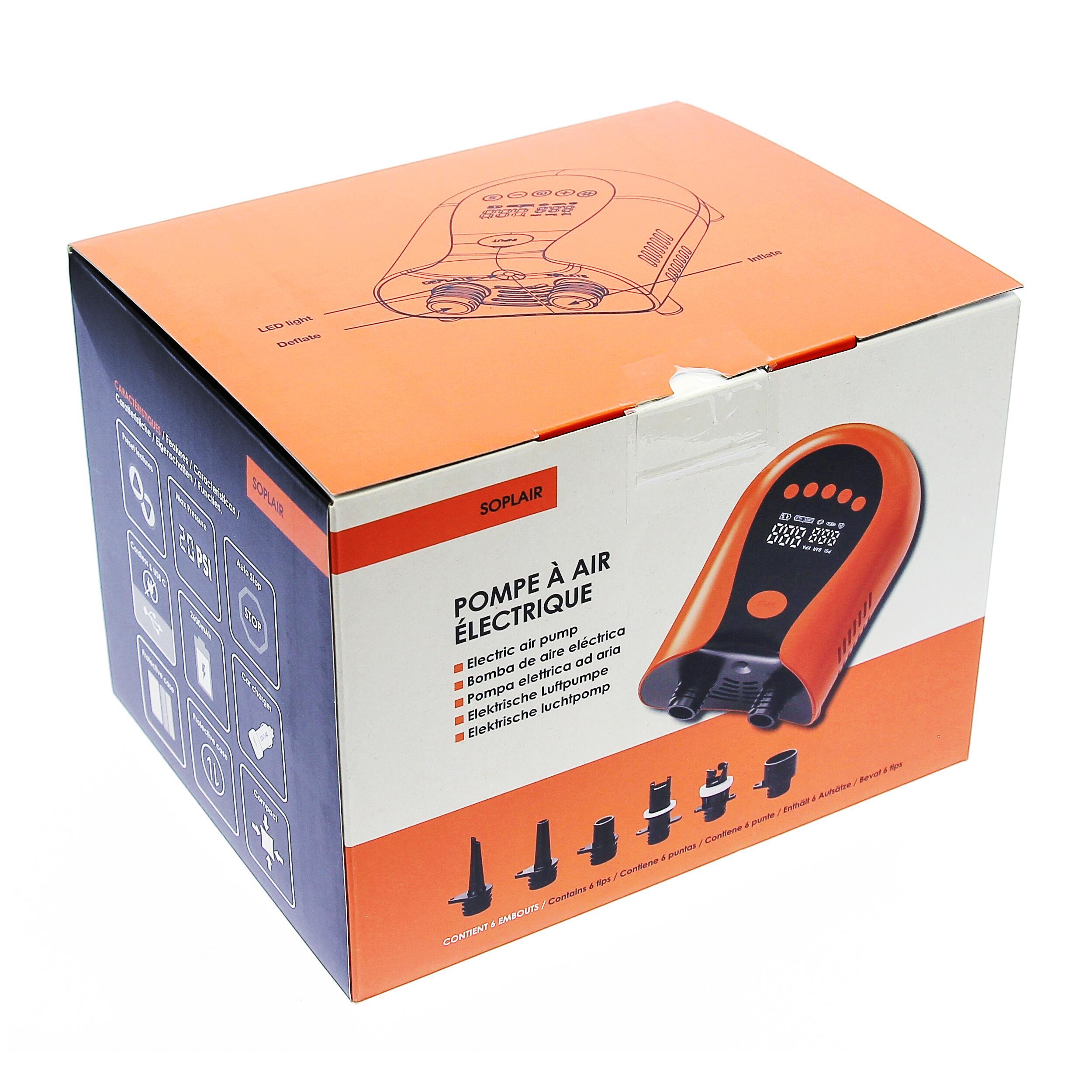 Pompe électrique 12V SOPLAIR avec écran LCD pour gonfler et dégonfler facilement votre auvent. Polyvalente, compacte et intuitive.