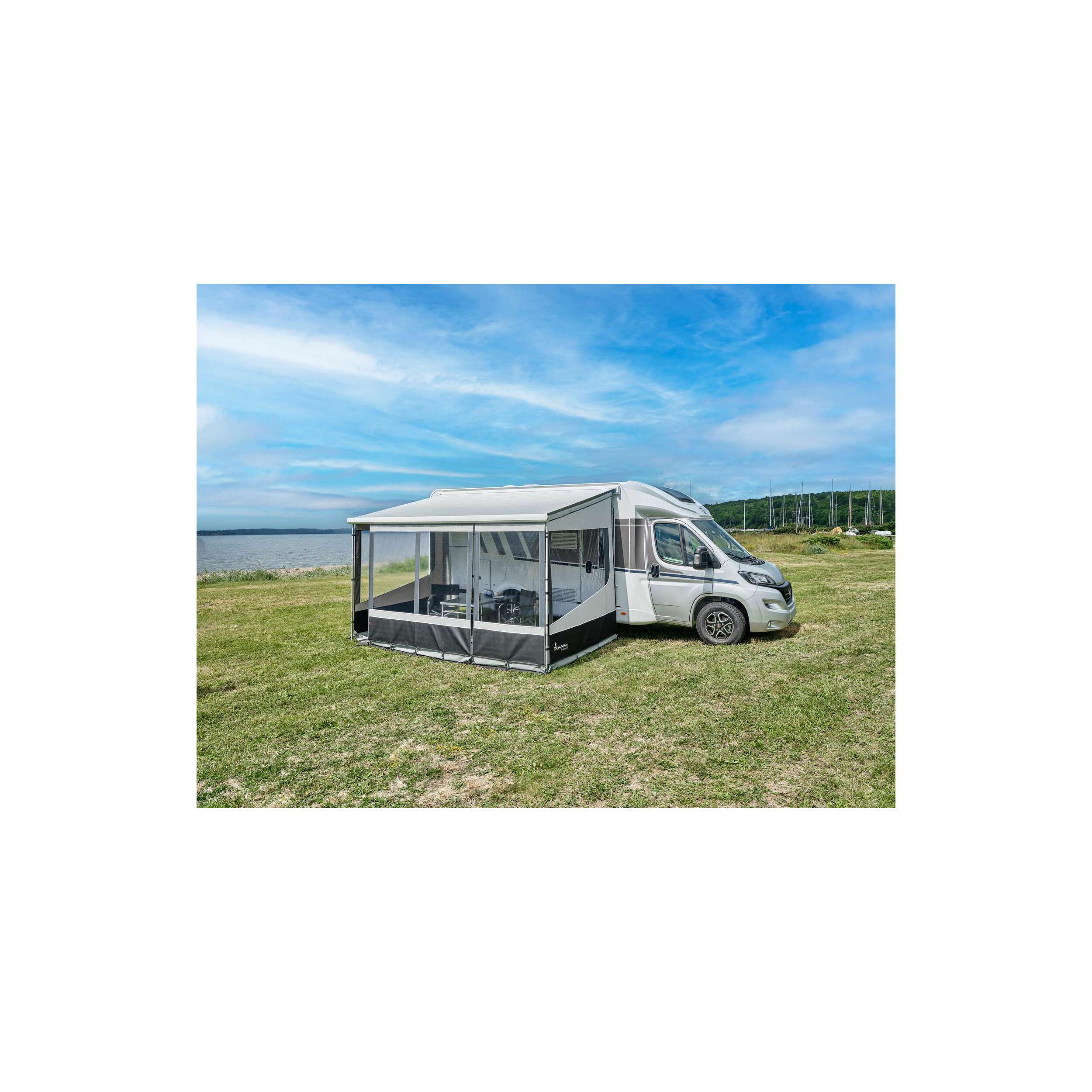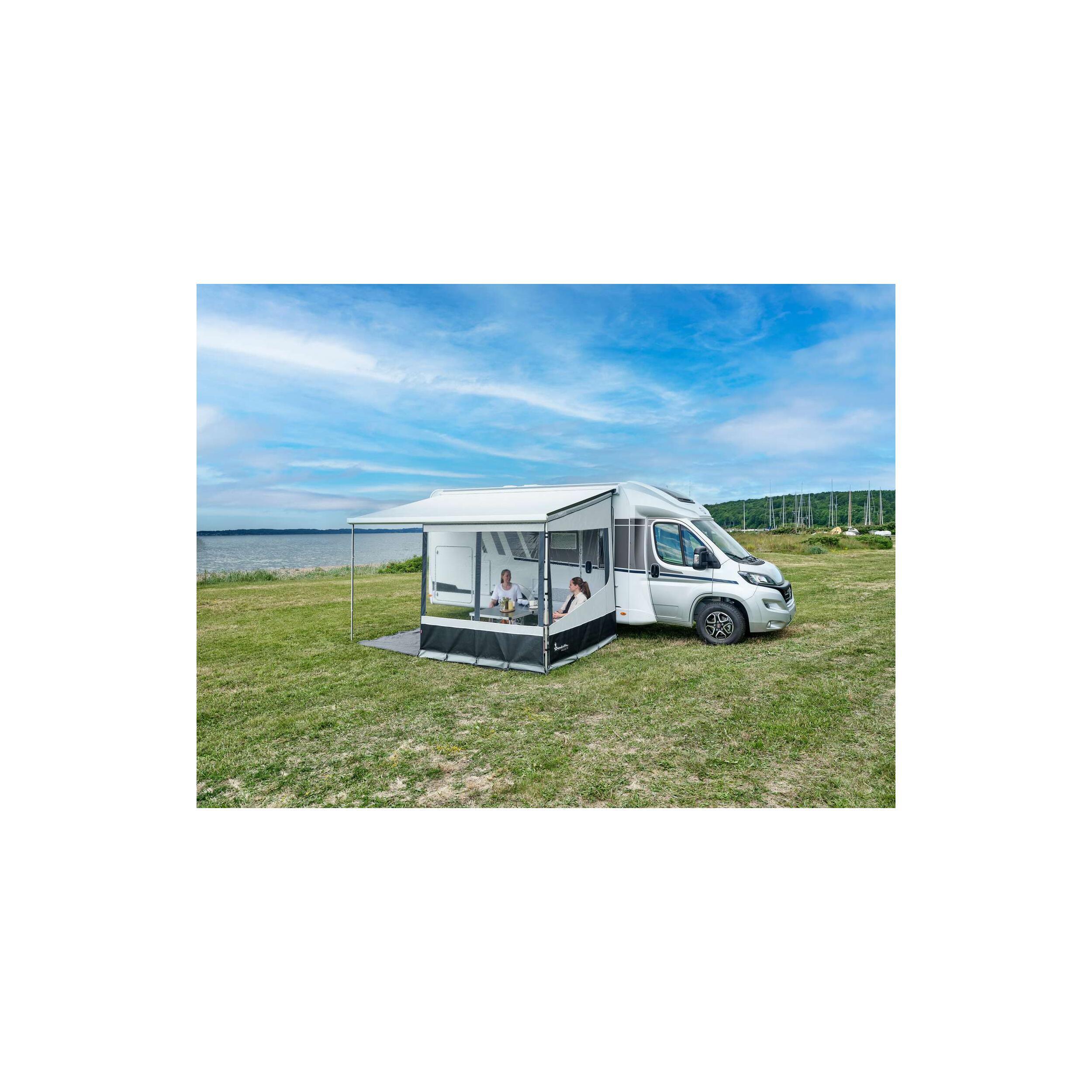 Disponible en deux dimensions, 120 cm et 220 cm, le Wind Front convient aux véhicules d’une hauteur comprise entre 245 et 270 cm. De plus, pour un abri encore plus complet, vous pouvez facilement le combiner avec le Wind Side, une extension latérale qui s’installe également en toute simplicité. Cette modularité vous permet d’adapter votre installation à vos besoins, qu’il s’agisse d’un simple moment de détente ou d’un espace extérieur protégé pour plusieurs personnes.