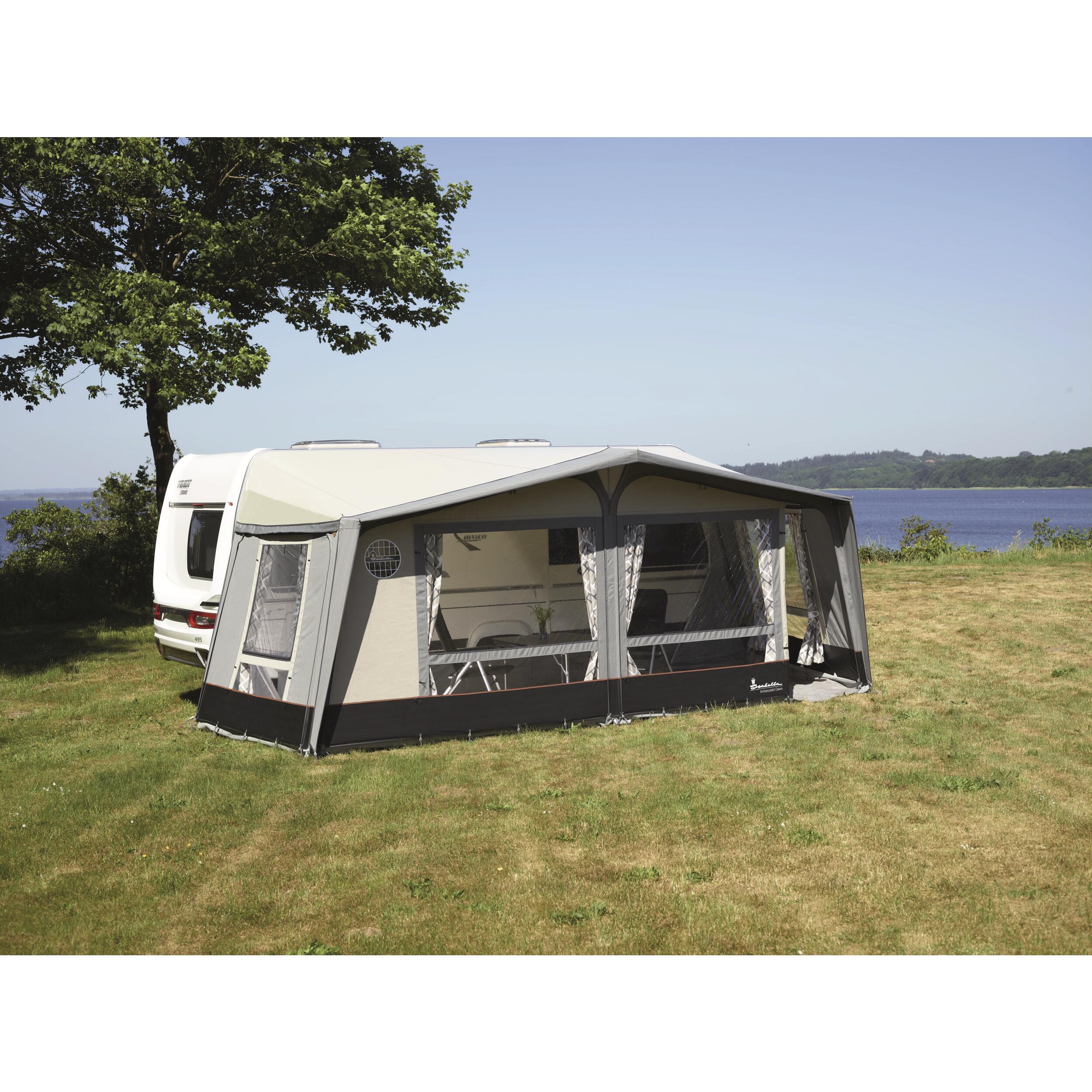 Haubanage : 4 haubans anti-tempête sur la façade et 2 sur chaque côté. 1 oeillet attache sangle anti-vent sur chaque côté.
