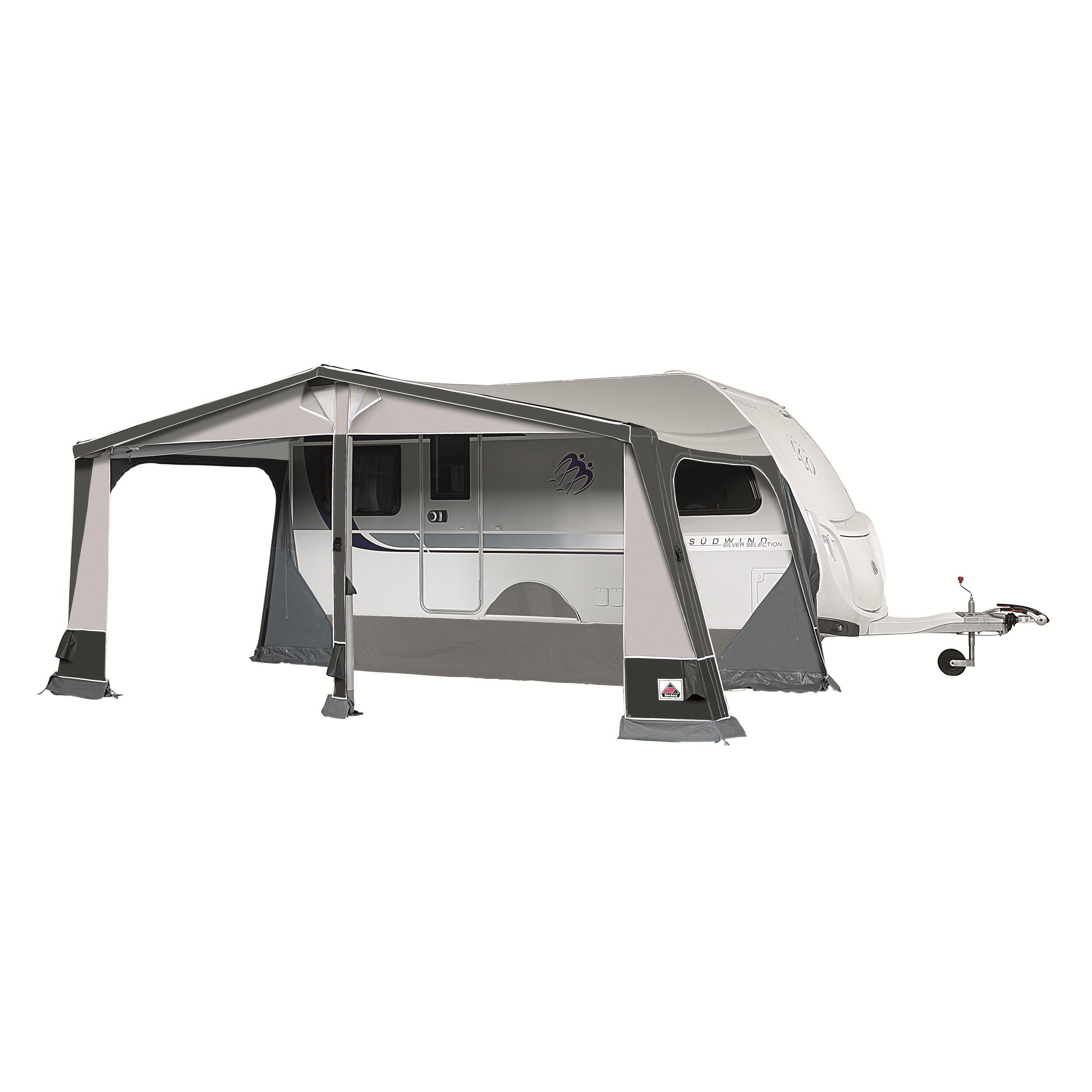 L'auvent fait tout le pourtour de votre caravane : fixation sur les côtés dans le rail de la caravane.