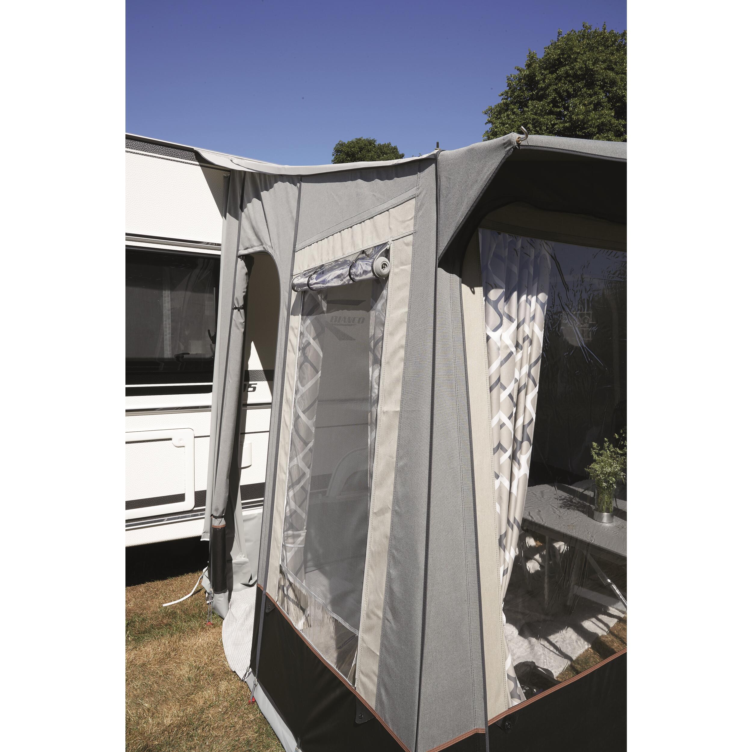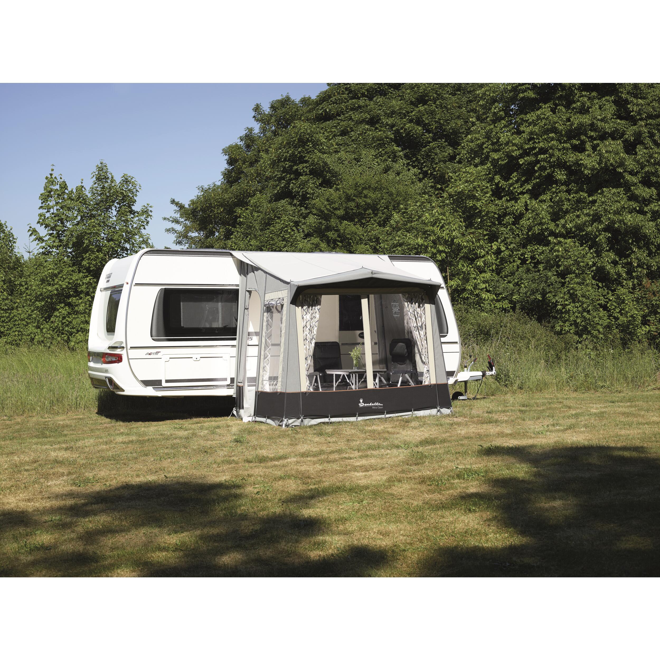 Pour les caravanes dont la hauteur varie entre 235 cm et 250 cm. Façade avant détachable. Une porte d'entrée de chaque côté.