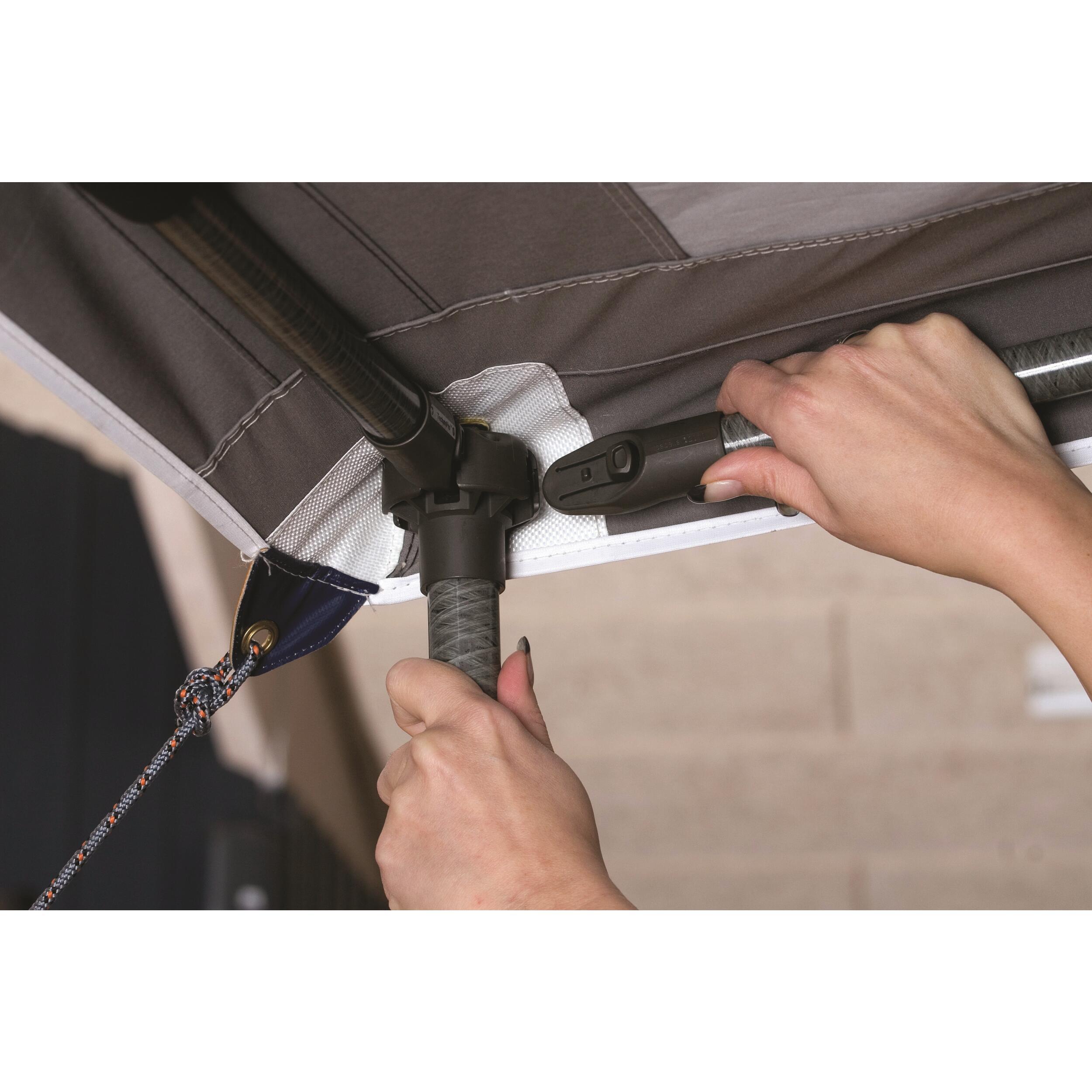 L'éclipse est une avancée pare-soleil adaptable sur tous les auvents standards Isabella à partir de 2000 (sauf modèle Penta) : fixation impeccable grâce au système de fixation Tectum-Pro.