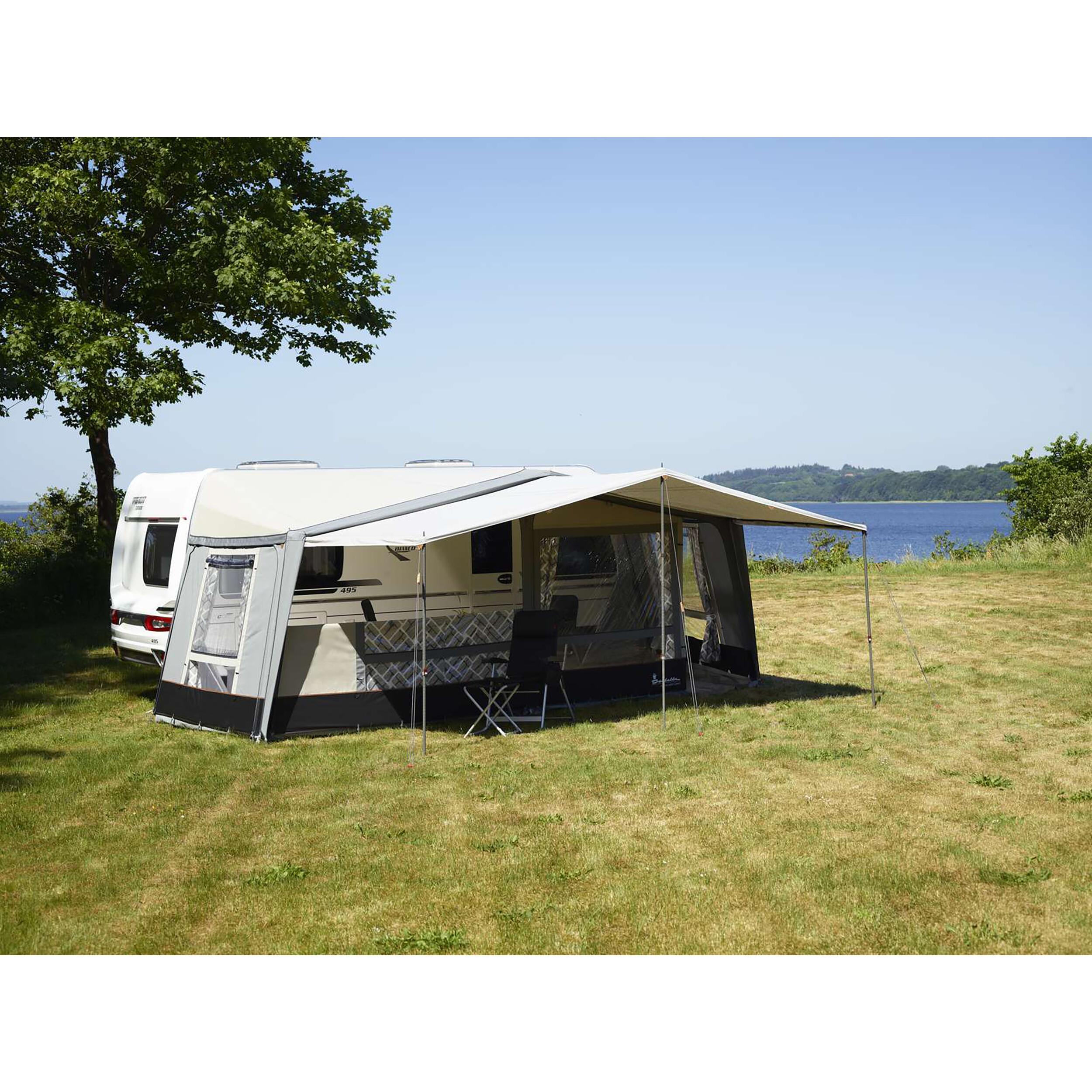 L’Eclipse convient non seulement en tant qu’avancée pare-soleil sur les modèles d’auvents d’Isabella mais peut également être utilisée comme une solette légère de voyage directement sur la caravane.
