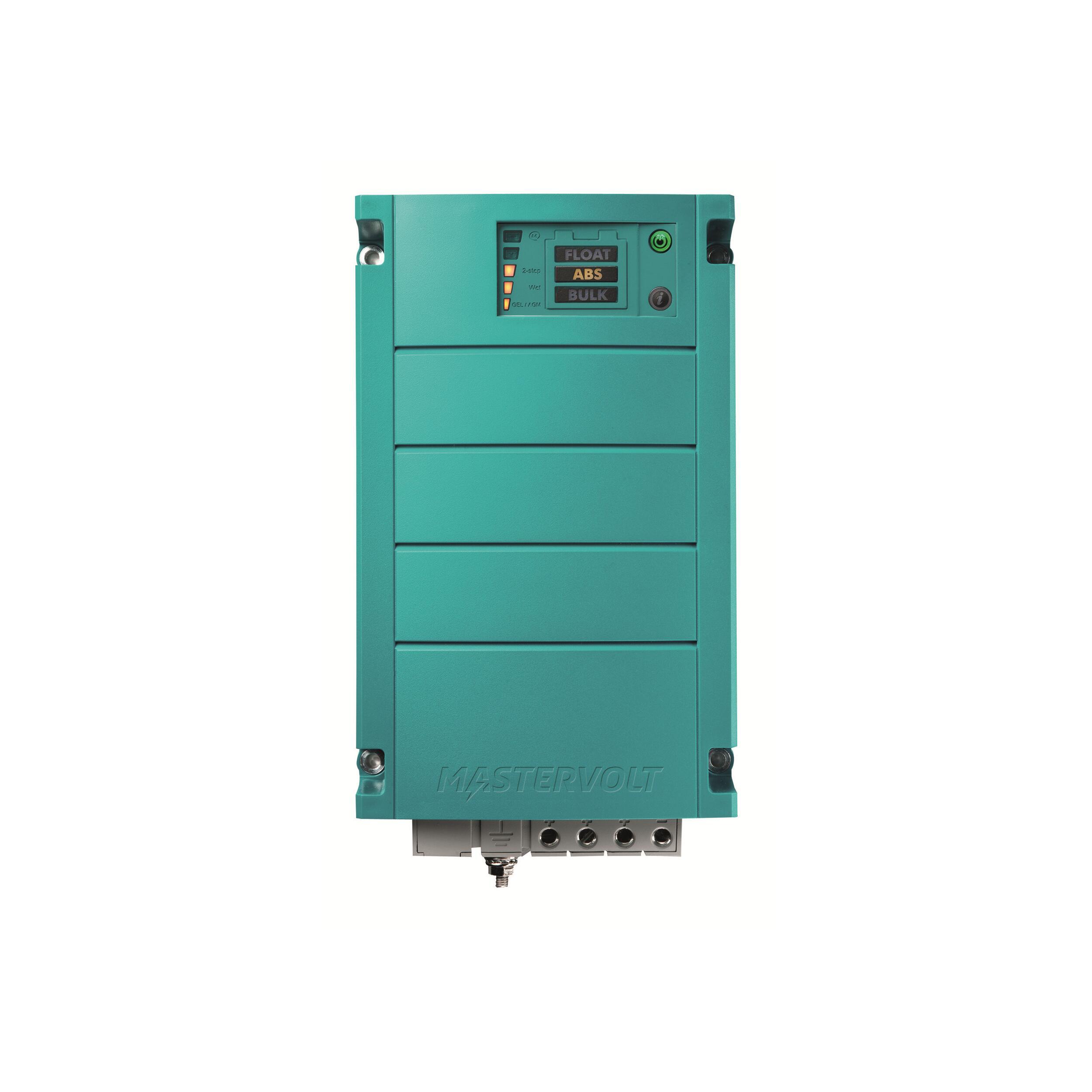 Le ChargeMaster de Mastervolt fournit une capacité maximale où que vous soyez grâce à la détection automatique. Elle permet un fonctionnement complètement automatique partout dans le monde, quelle que soit la tension principale (90-265 V CA, 50 ou 60 Hz). La technologie de charge à 3 étapes+ garantit une charge rapide et complète, alors que la régulation cos phi 1 tire le maximum d’une capacité de groupe limitée.