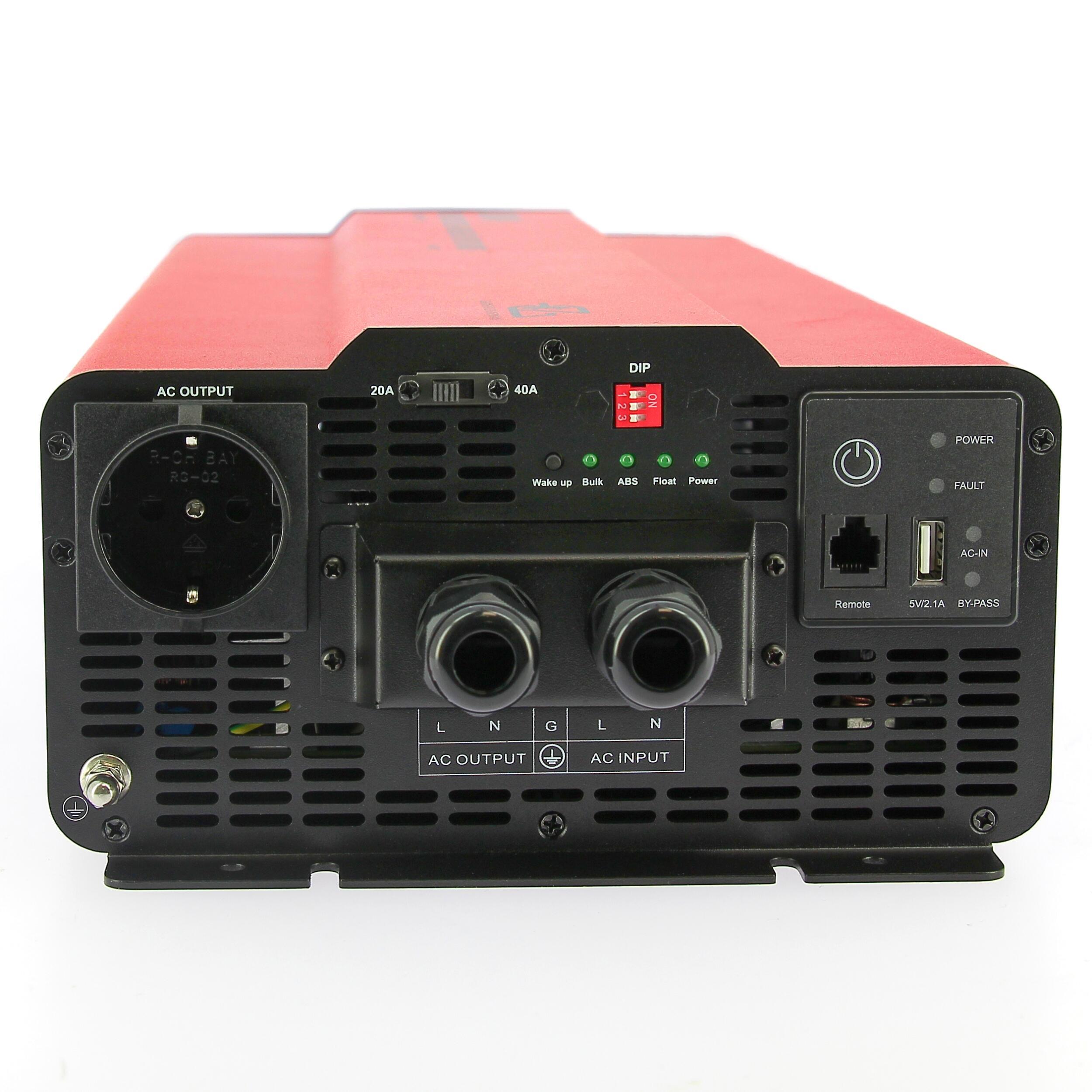 Le convertisseur (hors modèle 300W) est livré avec une commande déportée filaire munie d'un écran LCD rétroéclairé qui affiche en temps réel les données essentielles : tension, puissance consommée, mode actif et codes d'erreur éventuels. Le câble de 5m fourni permet d'installer le convertisseur dans les coffres ou les compartiments techniques des camping-cars et fourgons.