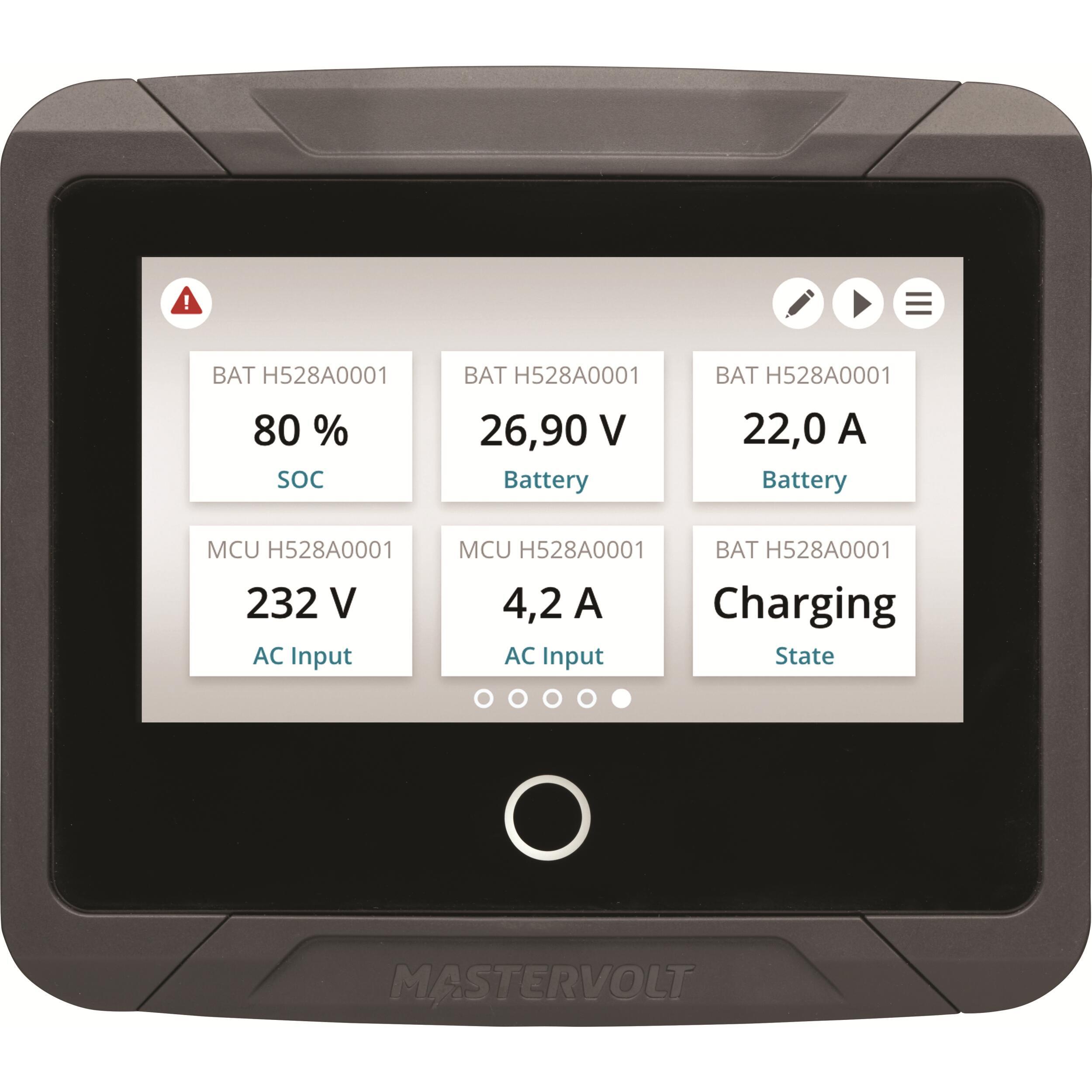 Ecran 4.3’ (10.9cm) couleur étanche à commande tactile et lisible en plein jour. Des pages faciles à personnaliser présentent toutes les informations utiles au suivi de l’installation et consultables d’un coup d’œil (autonomie batteries en % et en capacité, tensions AC et DC, fonction active (charge, convertisseur…). Journal des notifications et alarmes, pages préférées personnalisables, avertisseur sonore et bouton de raccourci vers l’accueil. Alimentation par MasterBus (câble 6 mètres fourni), montage facile rapporté ou encastré.