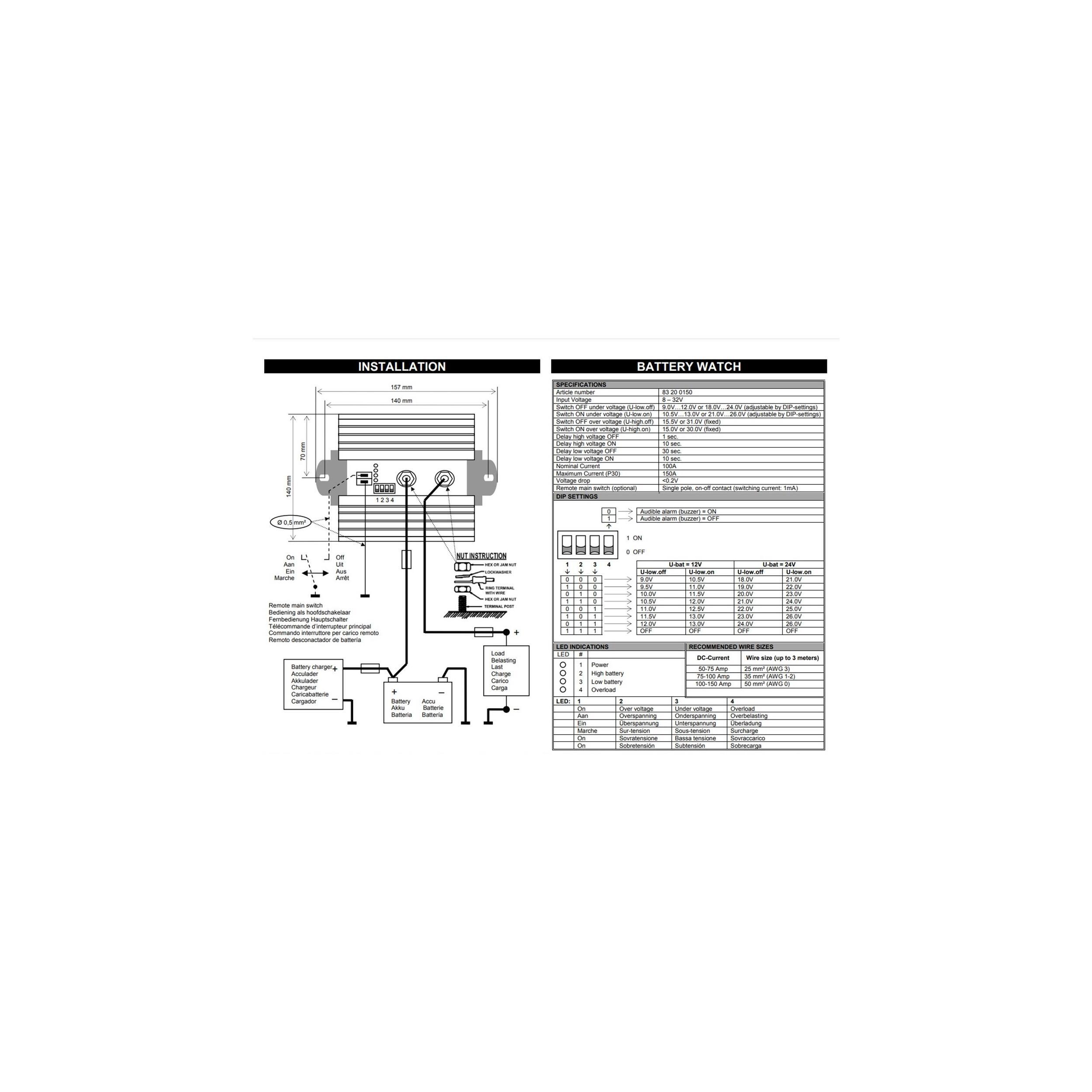 Commutateur de batterie avec protection contre surtension et décharge trop importante.